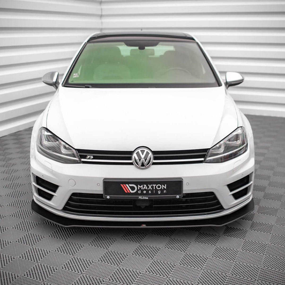 Maxton Design's Street Pro V1 black front splitter for the Mk7 Volkswagen Golf R adds a low and aggressive look to the vehicle's front end. The v1 Street Pro front lip features a slim low-line design with four subtle slats across the centre. This front splitter is supplied ready-to-fit with all the necessary hardware for a quick and easy installation process.