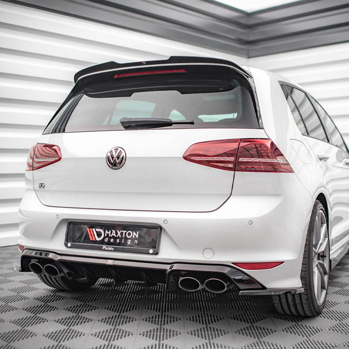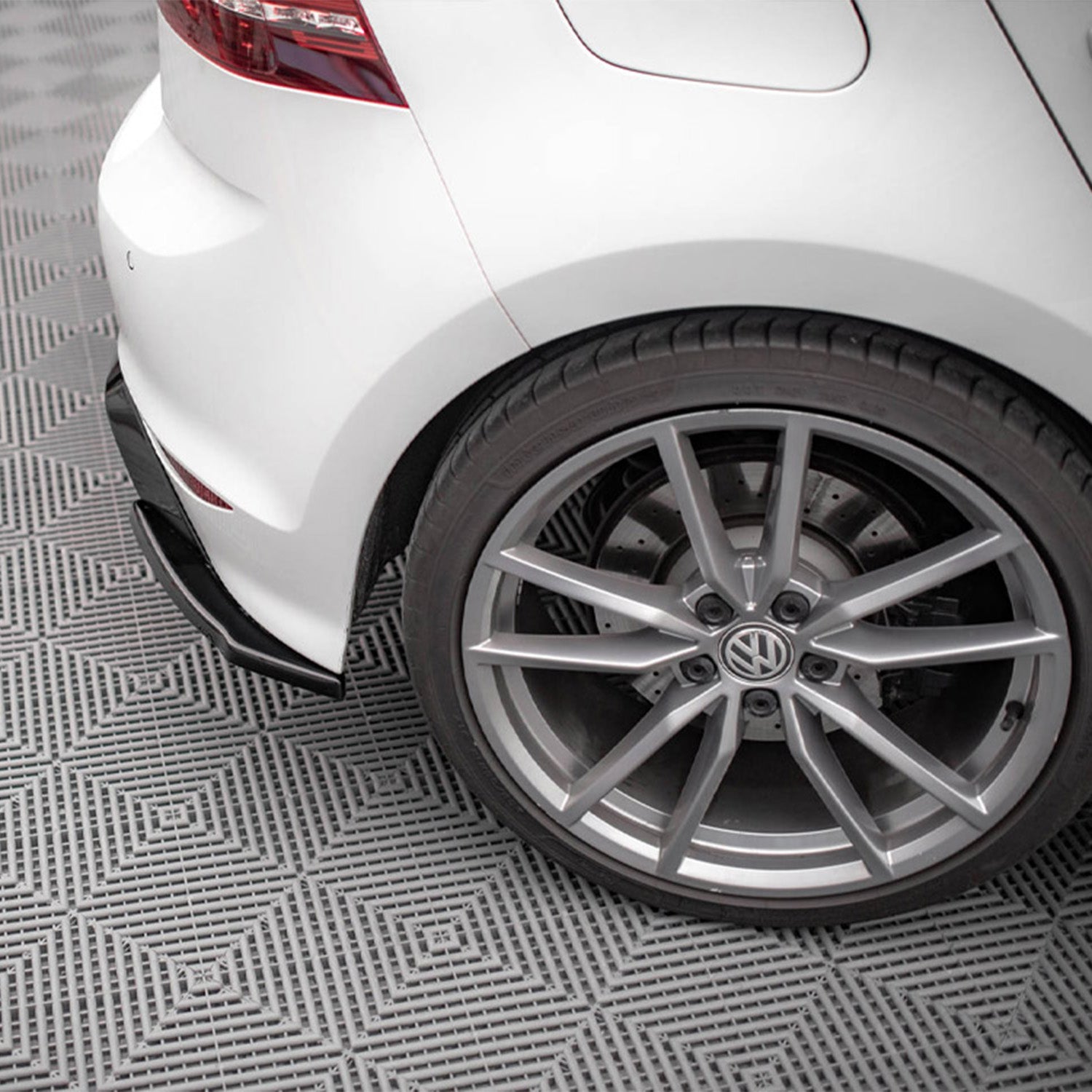 Maxton Design's gloss black V4 rear side splitters for the Mk7 Volkswagen Golf R add a more aggressive look to the vehicle's rear end. The diffuser extensions sharpen up the rather plain and boxy OEM rear bumper, giving the Mk7 Golf R more presence on the road. These rear side splitters are supplied ready-to-fit with all necessary hardware for a quick and easy installation process.