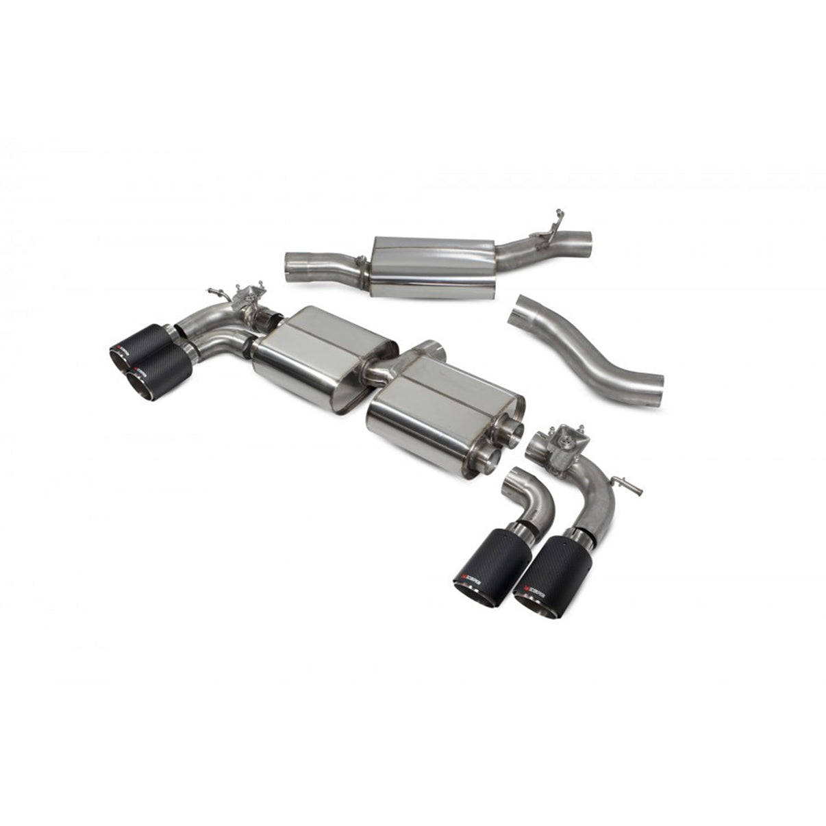 The Scorpion system splits the large OEM backbox into two smaller silencers - essential for extracting more sound from the Mk7.5 Golf R.