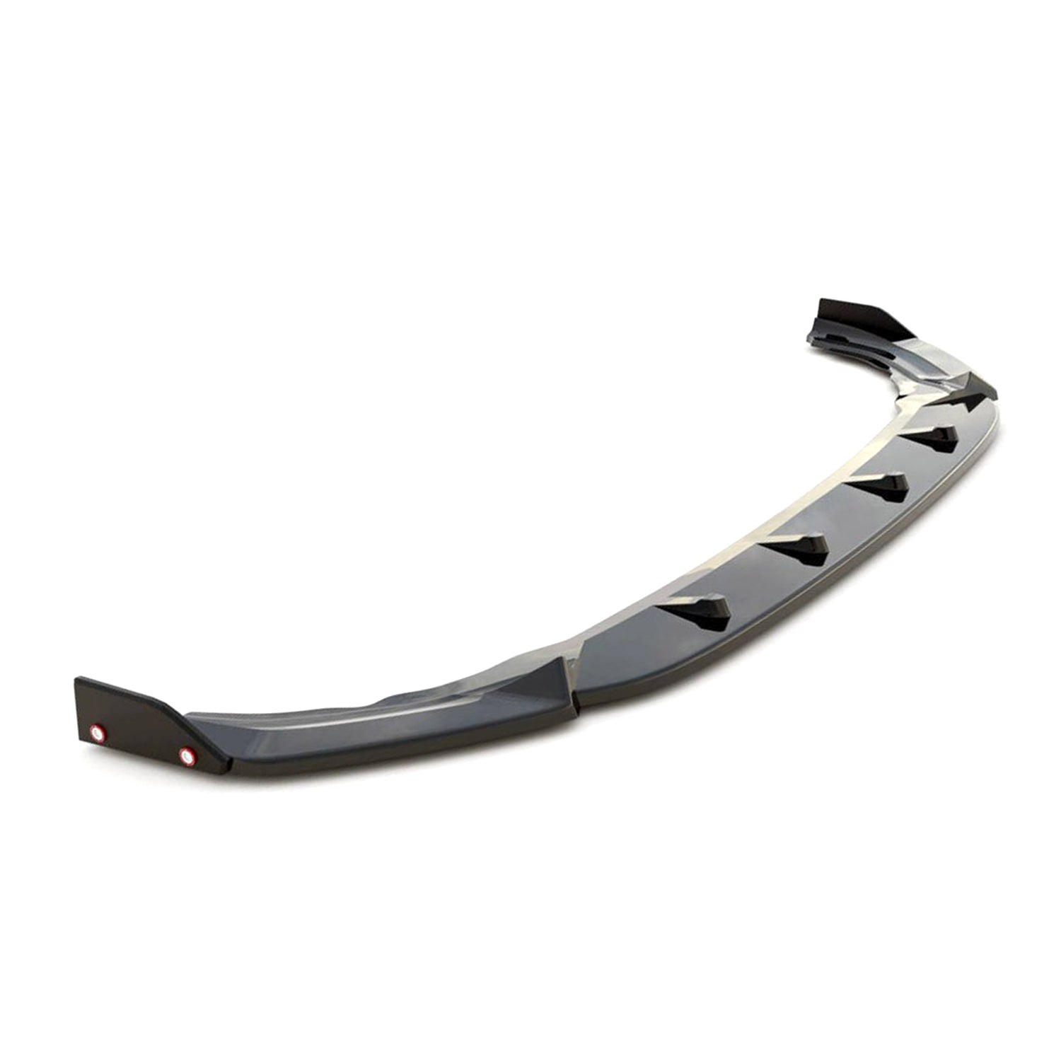 Maxton Design's V2 gloss black front splitter with flaps for the Mk8 Volkswagen Golf R adds a low and aggressive look to the vehicle's front end. Much like the V1, the V2 features a low-line design with four subtle slats across the centre. What makes the V2 stand out is the addition of two angular recesses on either side for extra aggression. The added flaps featured in this version give the V2 slightly more road presence. This front splitter is supplied ready-to-fit with all the necessary hardware for a quick and easy installation process.