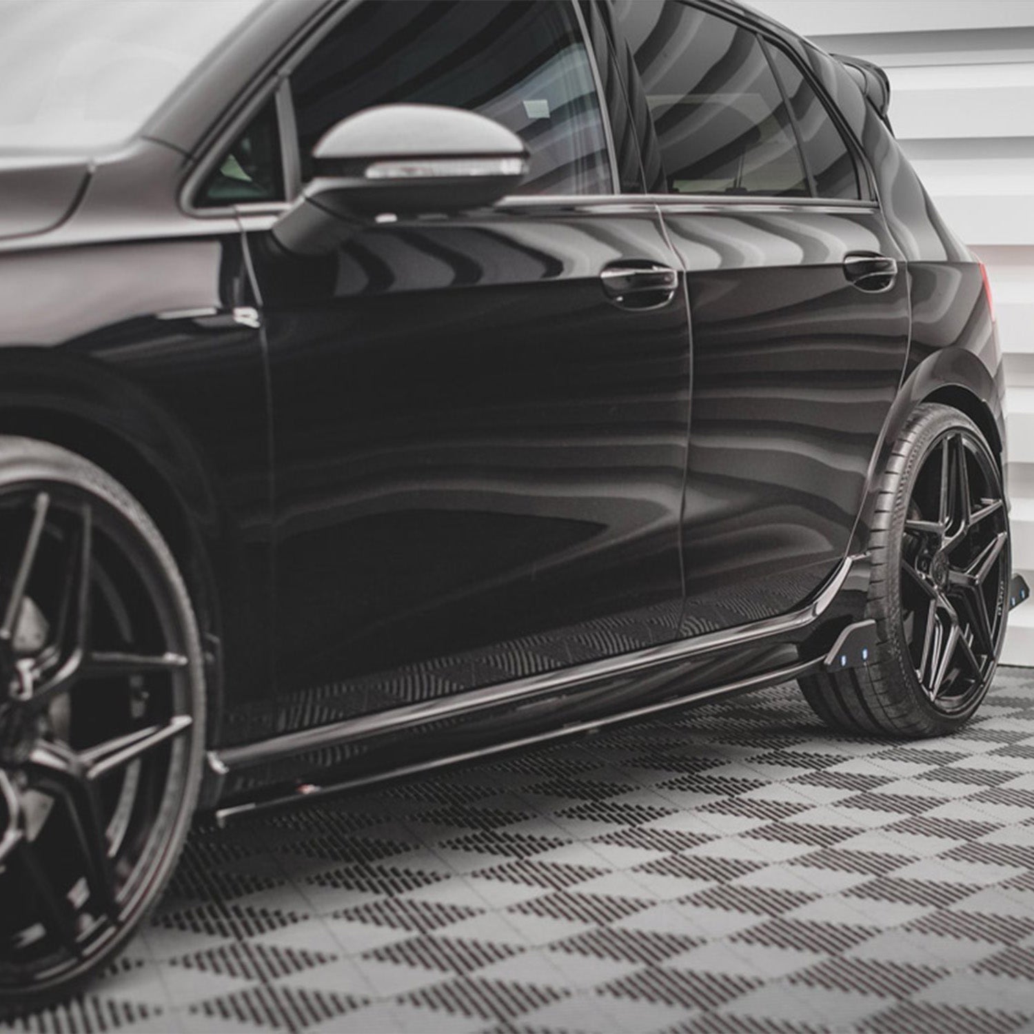 Maxton Design Volkswagen Golf R V2 Side Skirts With Flaps In Gloss Black (Mk8)