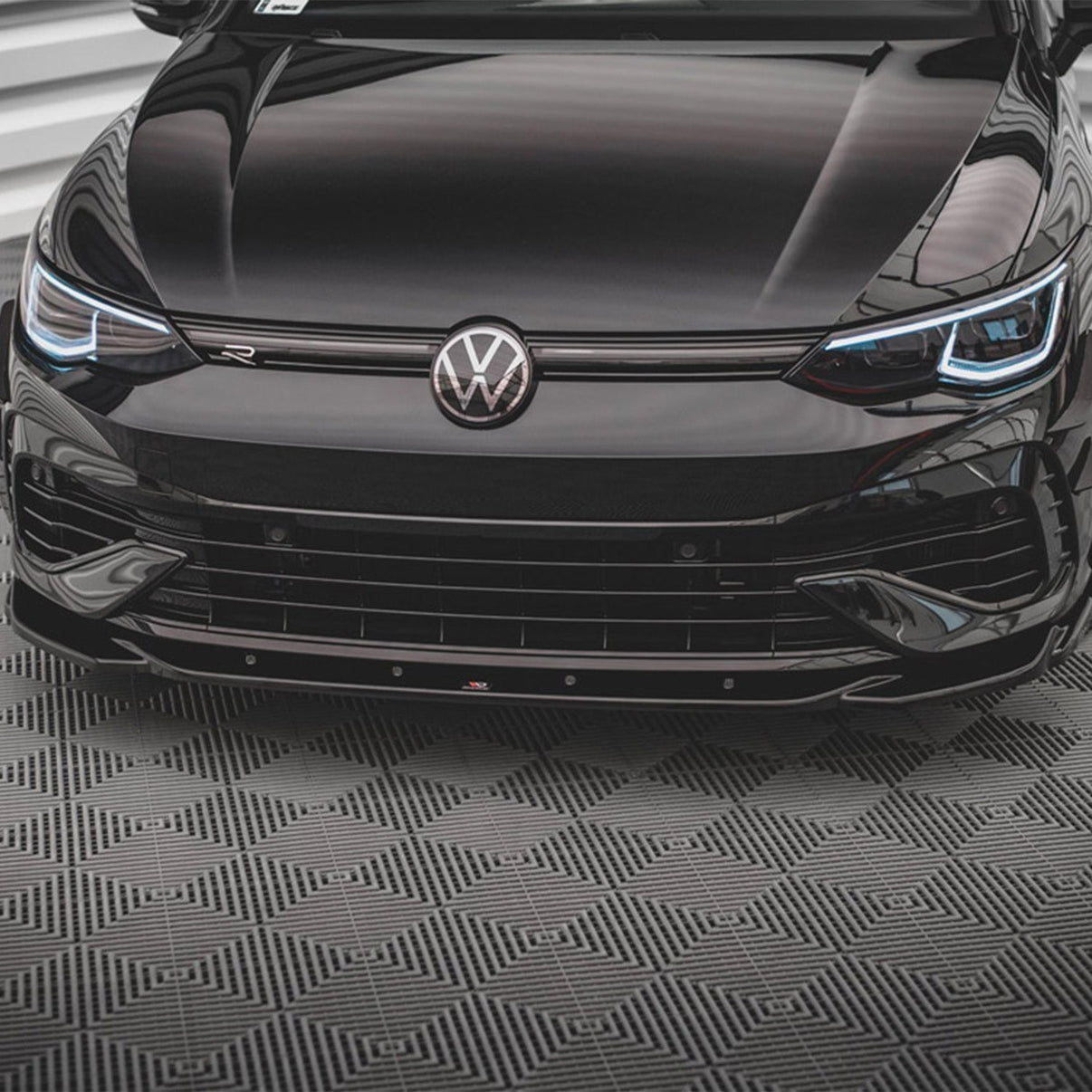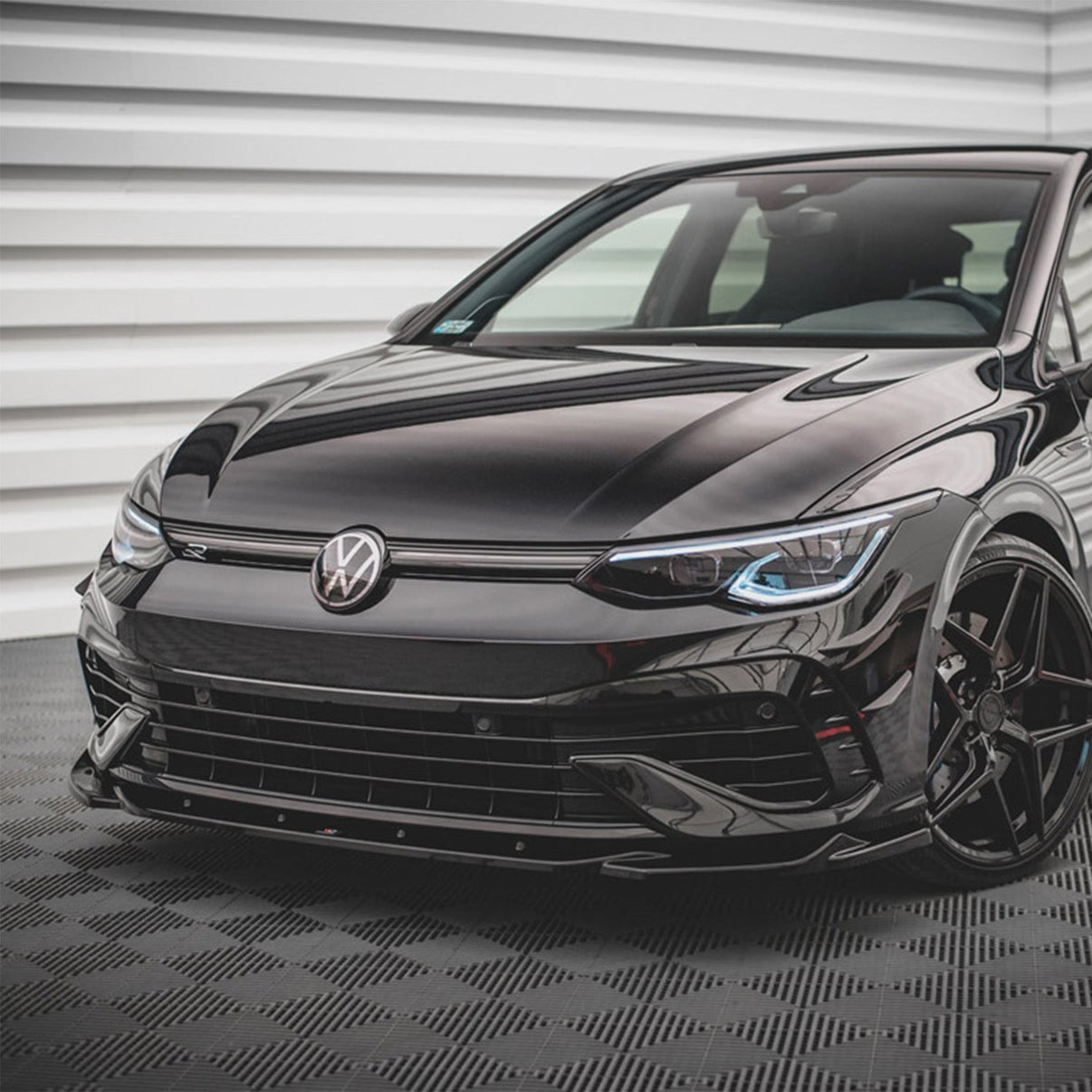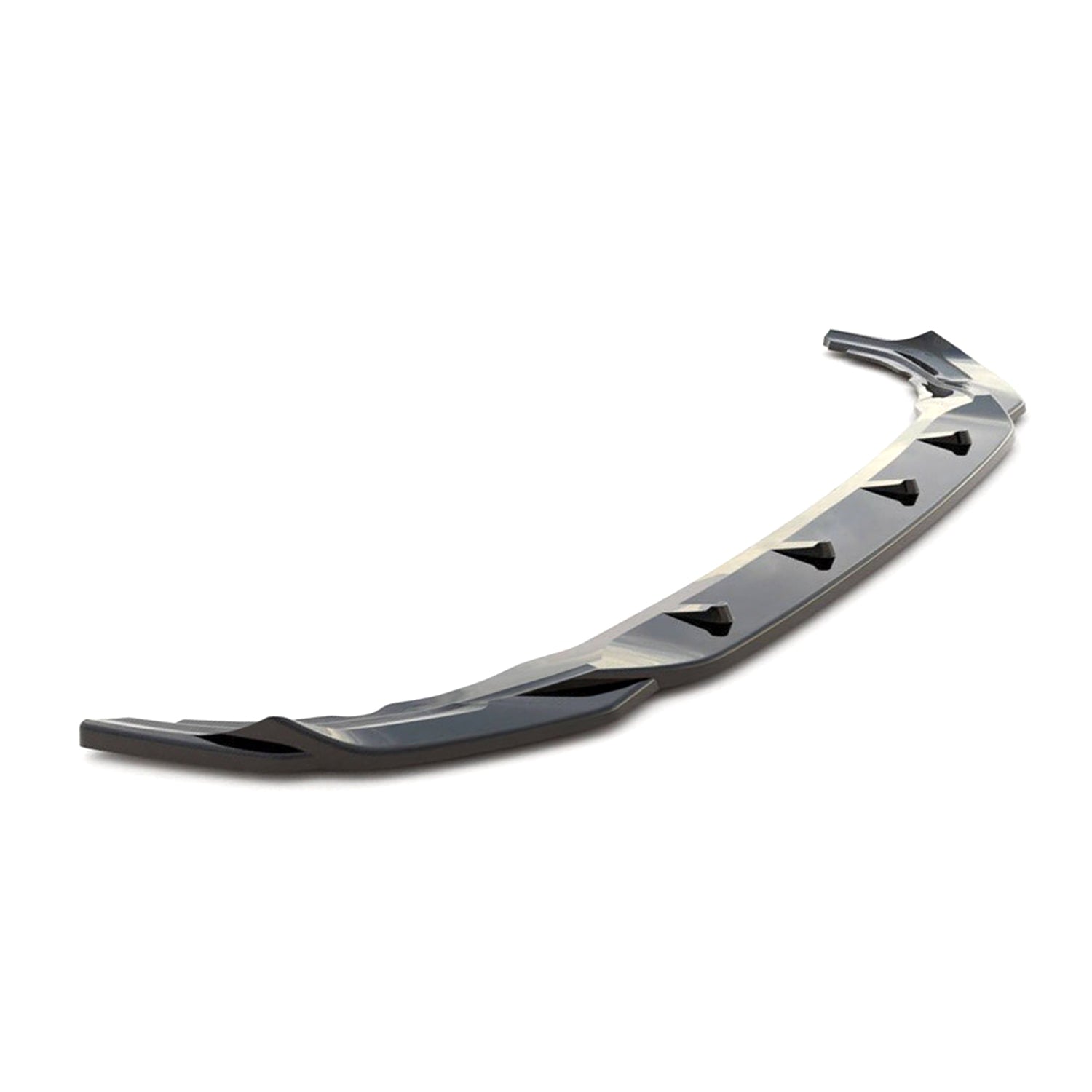 Maxton Design's V4 gloss black front splitter for the Mk8 Volkswagen Golf R adds a low and aggressive look to the vehicle's front end. The V4 features the same aggressive design as the V2 with the addition of a further two recesses towards the ends with subtle upward fins. This front splitter is supplied ready-to-fit with all the necessary hardware for a quick and easy installation process.