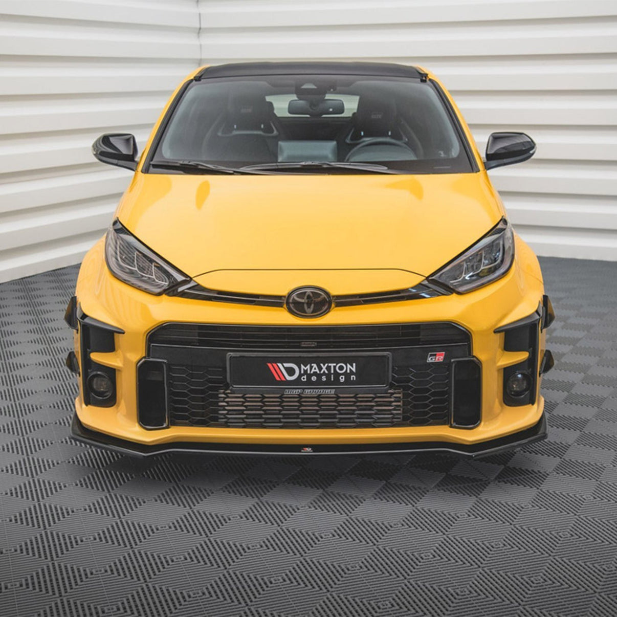 Maxton Design's Toyota GR Yaris Gloss Black Front Bumper Canards give the car's front end a motorsport look. With the 2020+ GR Yaris being a homologated rally car, the canards suit the front bumper perfectly, especially when combined with a high-quality front splitter.