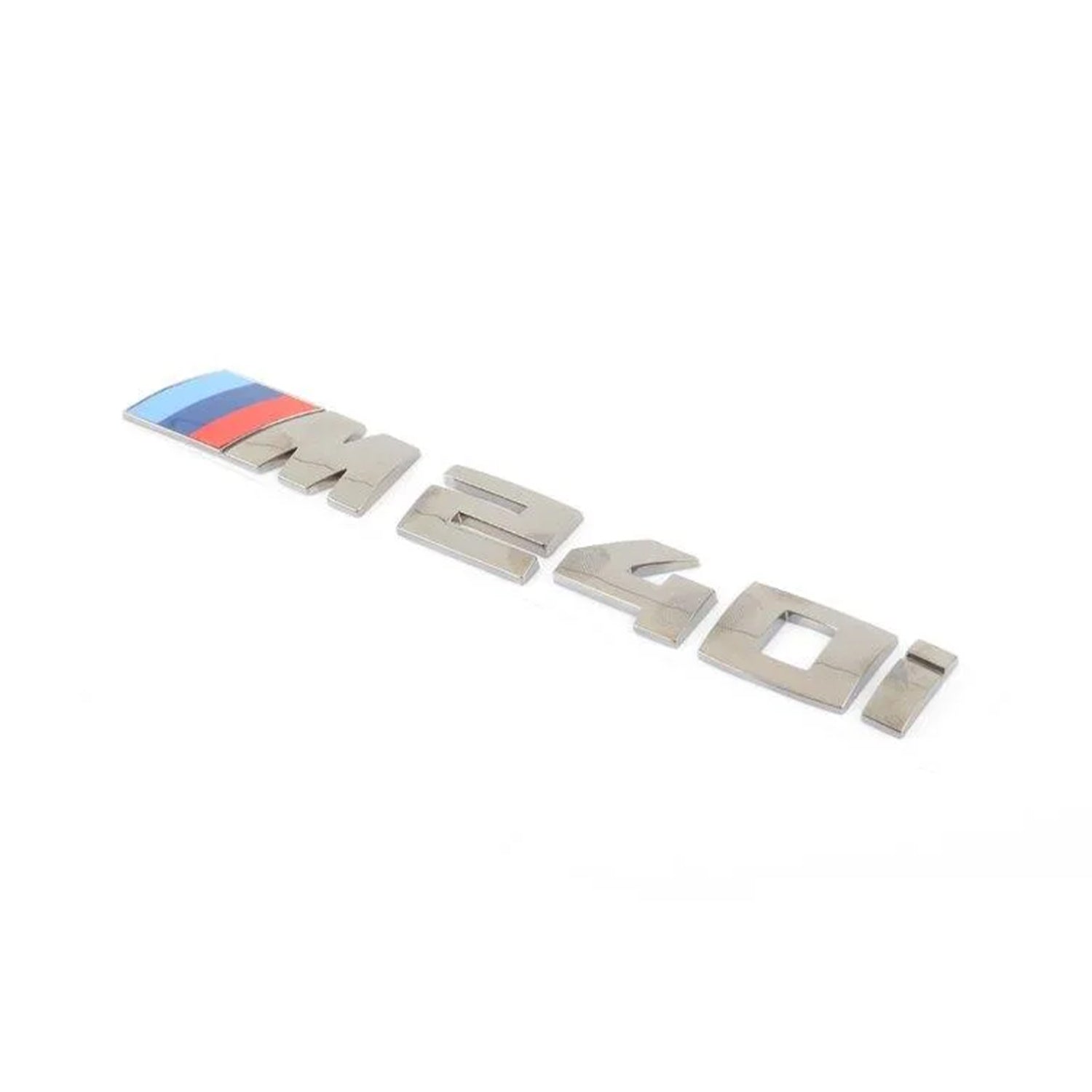 Genuine BMW M240i replacement silver rear badge. This is an OEM BMW model designation badge, should yours need replacing.