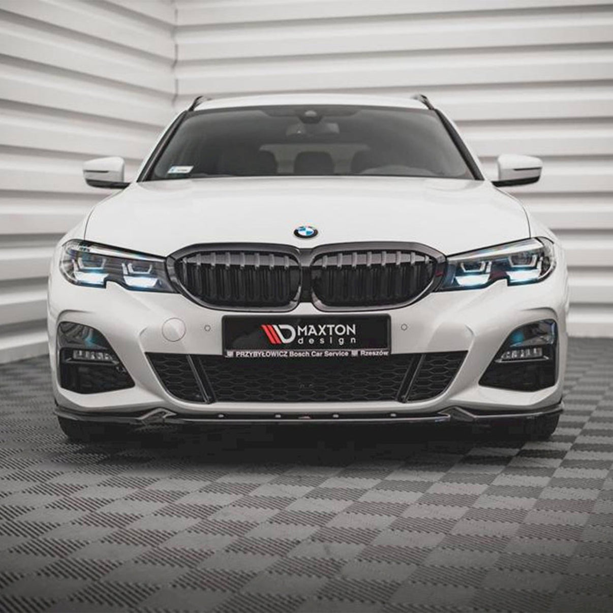 Maxton Design's gloss black V4 front splitter for the BMW G20 and G21 3 Series pre-LCI gives the vehicle's front end a more aggressive & upmarket look. The V4 design features a series of slats across the centre that adds more presence on the road.