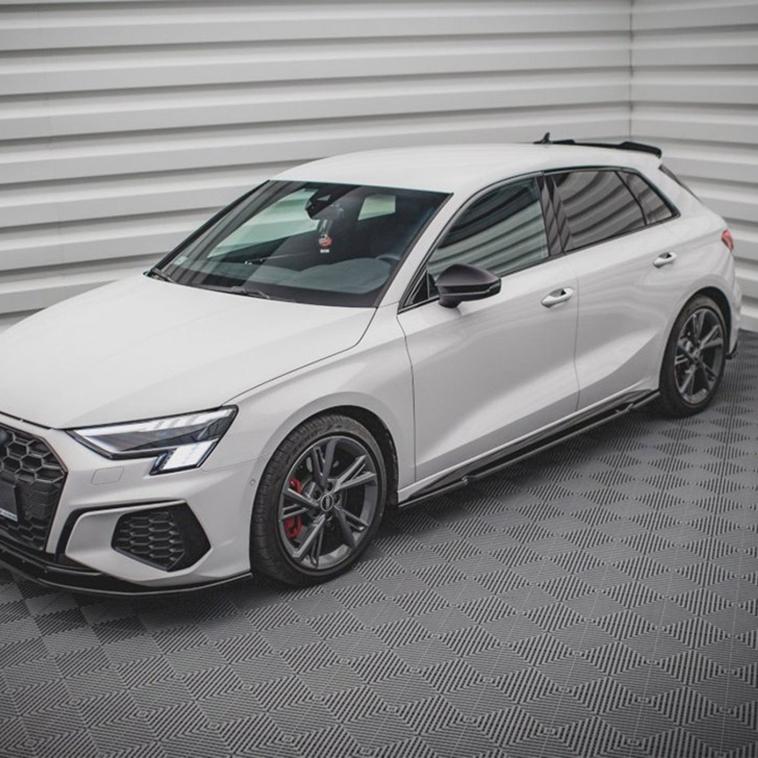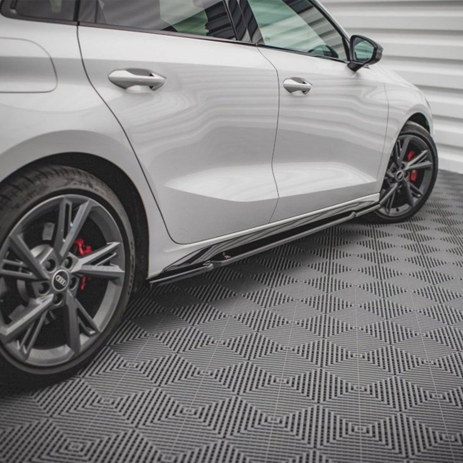 Maxton Design's gloss black side skirts for the Audi 8Y S3 make the car appear lower, wider, and more aggressive. The Maxton side skirts feature two subtle recesses that give it a slightly more aggressive design than a completely flat side skirt. These side skirts were designed using 3D scanning technology to ensure a perfect fit. The premium gloss black finish is very sleek and the lacquer is highly resistant to corrosion for long-term style.