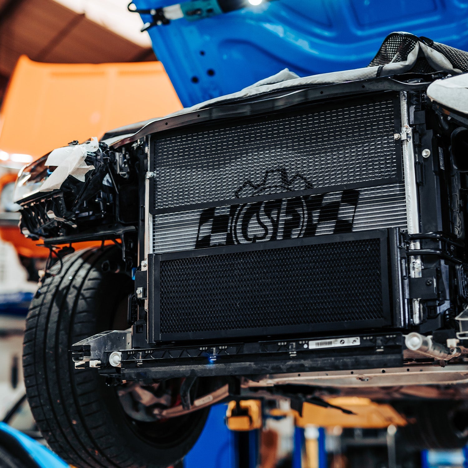 CSF knows the kind of punishment the front of a car can take on or off the track. The wrong bit of debris flying through the front grille can quickly punch a hole in a cooler. Because the Transmission cooler sits at the very front of the centre cooling stack, it is quite vulnerable to damage. In addition, “open face” race-style grilles have become quite popular on the G8X. These grilles can add to the risk of debris passing through. The factory grille is the only form of protection for the OEM transmission cooler. However, this still isn’t the level of protection many race teams and enthusiasts are comfortable with. To address this concern, CSF has incorporated a replaceable rock guard to keep your cooler safe and your G8X running strong in the event of debris making it through the front grille.