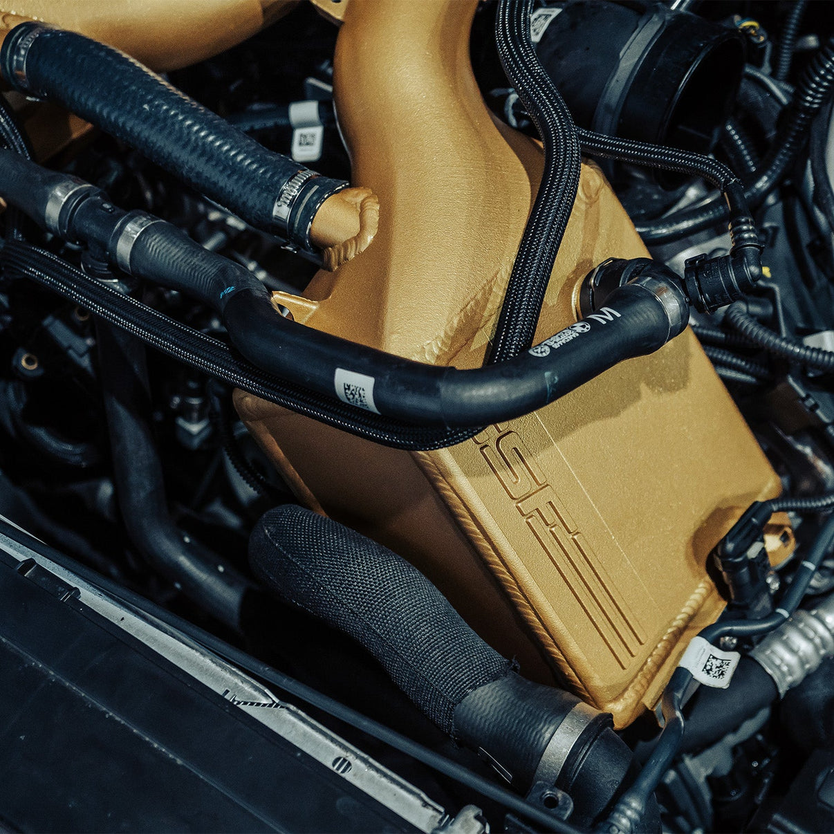 The one-piece cast end tanks and integrated charge pipe eliminate weak points found in OEM units, ensuring the system can withstand much higher boost pressures without leaks or failure. This stronger construction allows tuners and enthusiasts to safely push the S68 platform to its full potential.