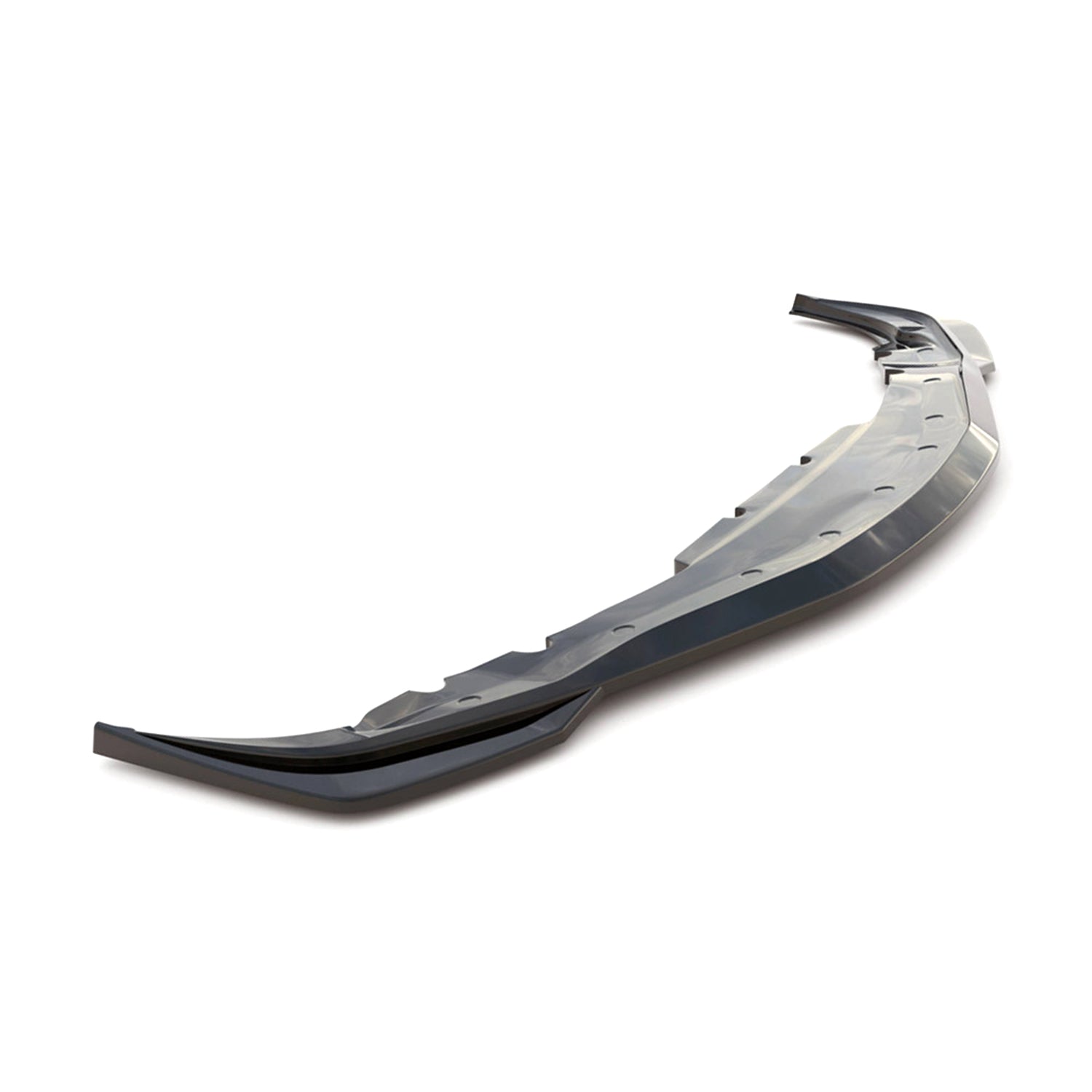 Maxton Design's Toyota A90 Supra V1 Gloss Black Front Splitter adds a lower and more imposing look to the vehicle's front end. The unique flared corners gives the vehicle greater road presence and increased aggression.