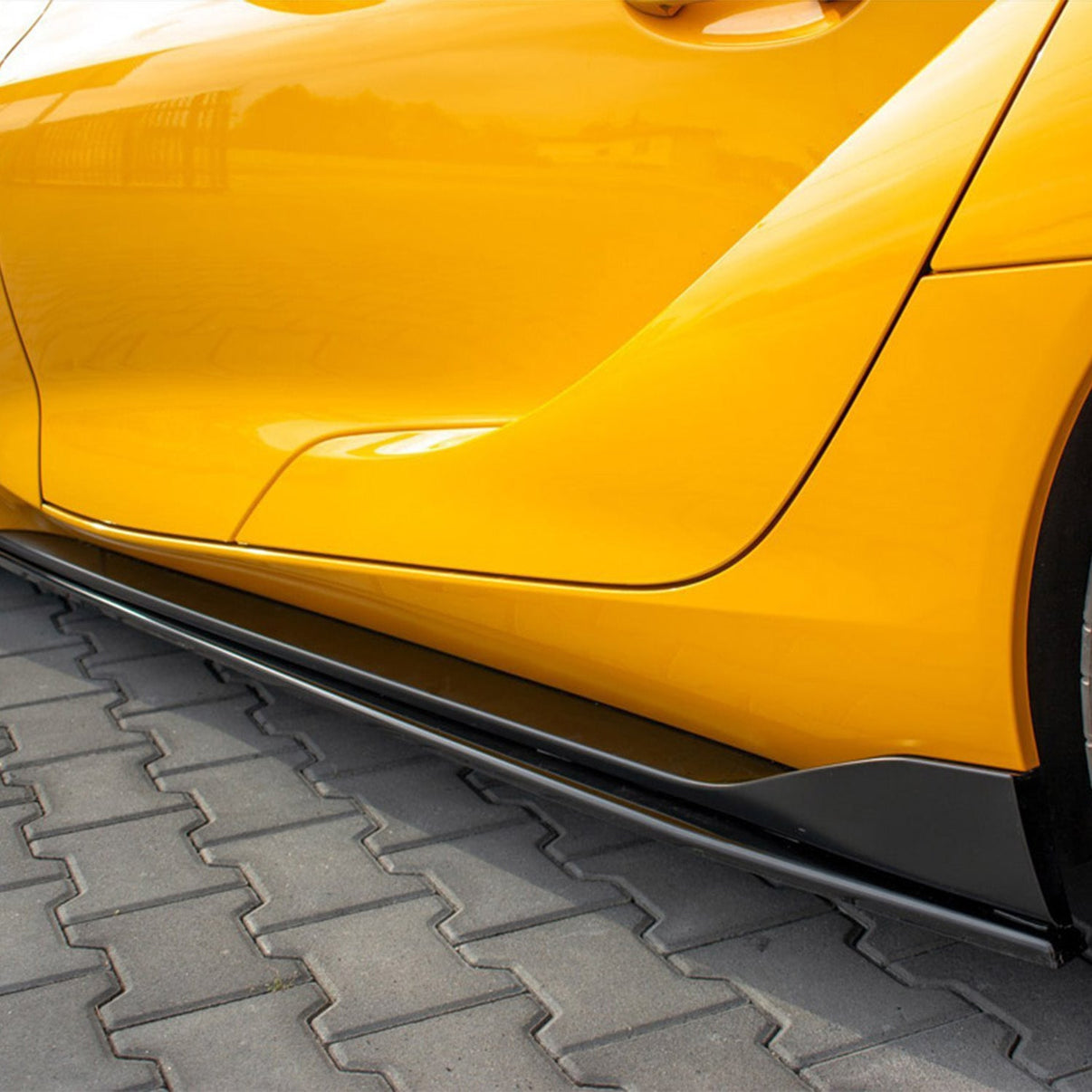 Maxton Design's Toyota A90 Supra V1 Gloss Black Side Skirts add a lower and wider look to give the Mk5 generation Supra greater road presence and increased aggression. The V1 design is clean and simple for an OEM+ look.