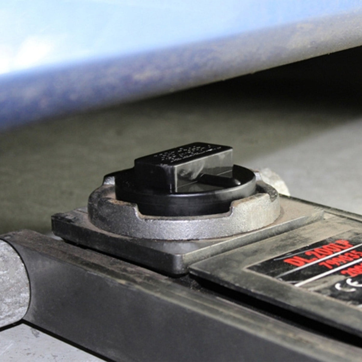 Made from Black 95A durometer polyurethane for durability, this new and handy workshop widget fits into the lifting points of over 60 modern models of BMW, Mini & Rolls Royce. Designed to fit into the original rectangular plastic lifting point, it helps lift stability and location whilst protecting the underside of yours/your customer's vehicle. To use, simply place the Jack Pad on your trolley jack, align it with the recess in the original plastic lifting point and lift the car correctly and securely.