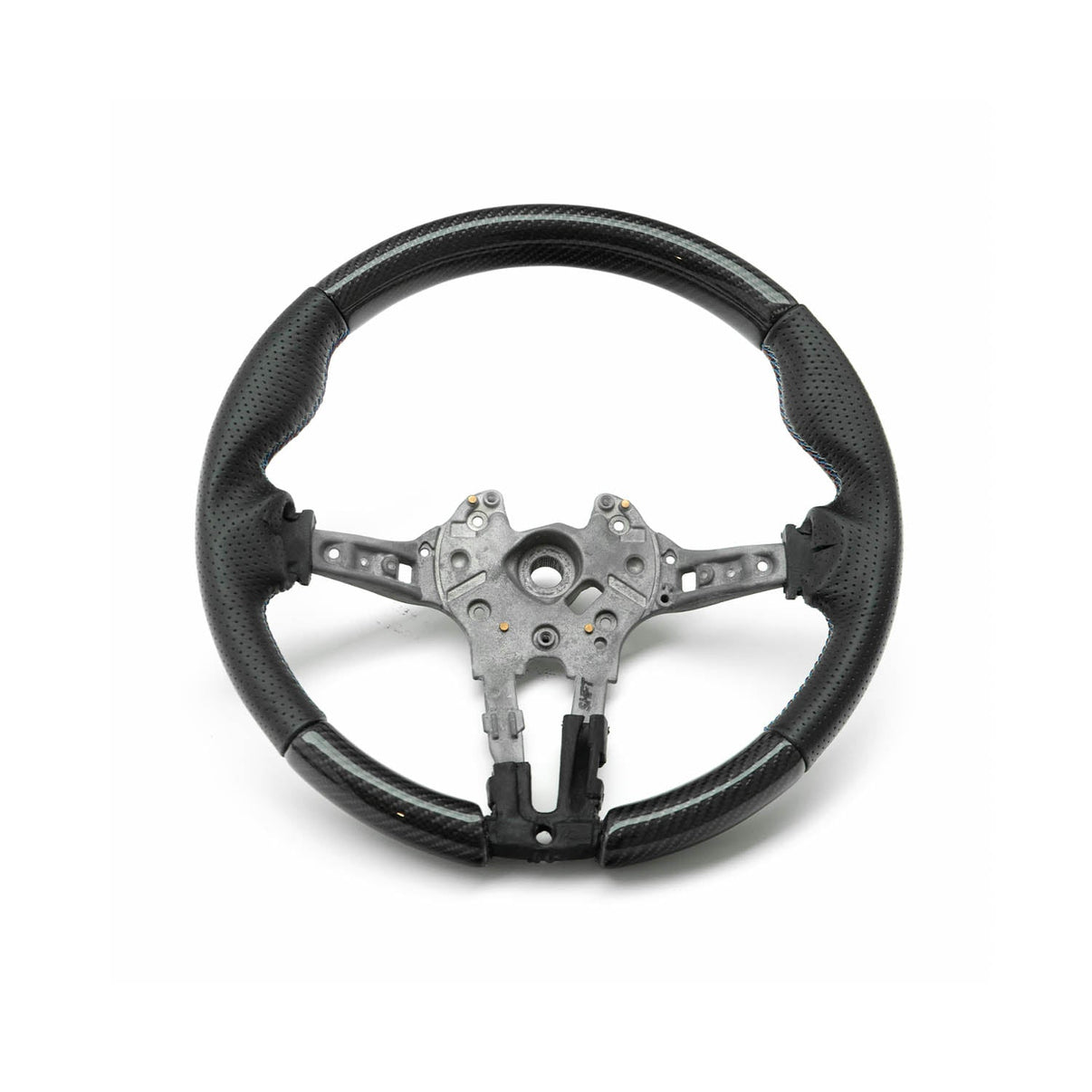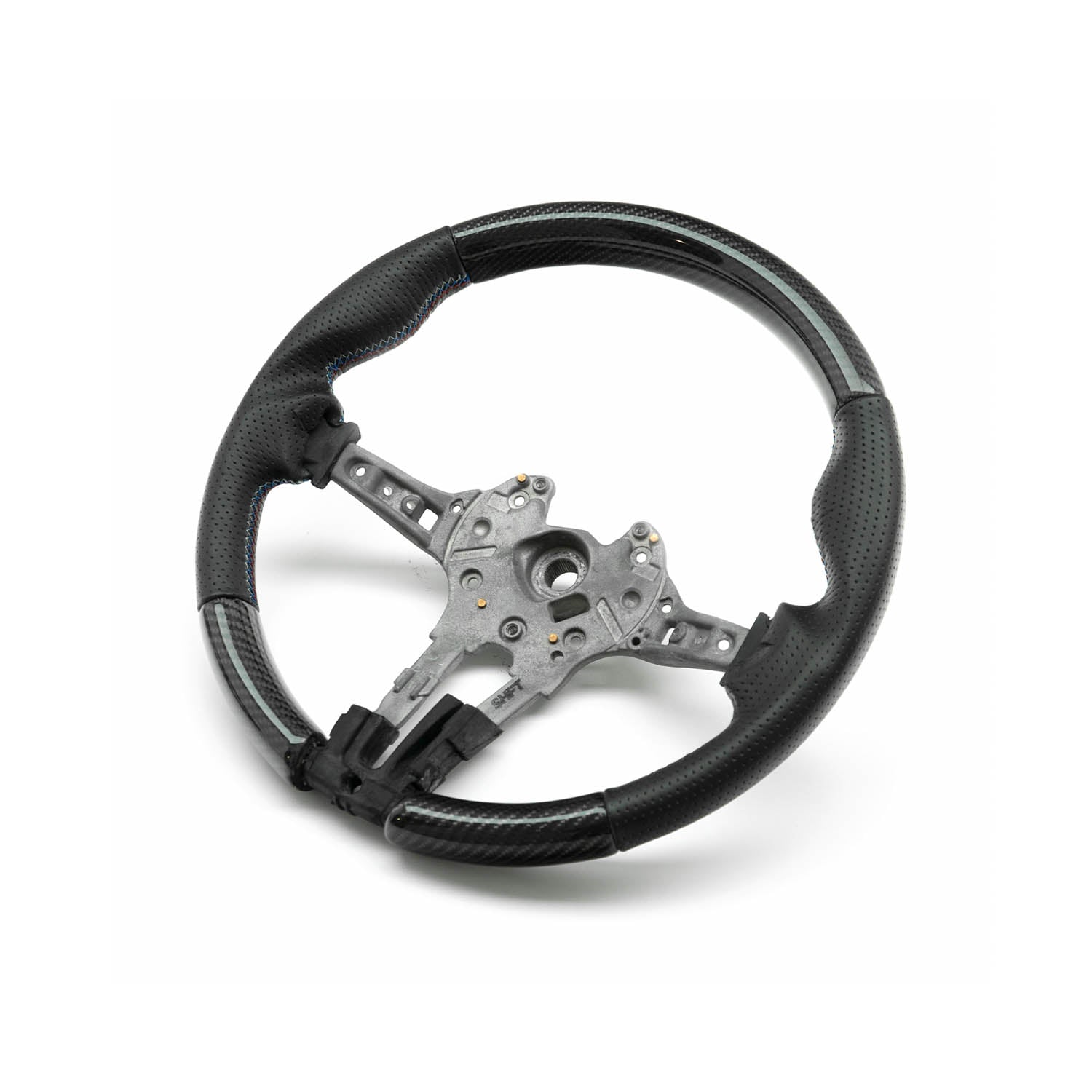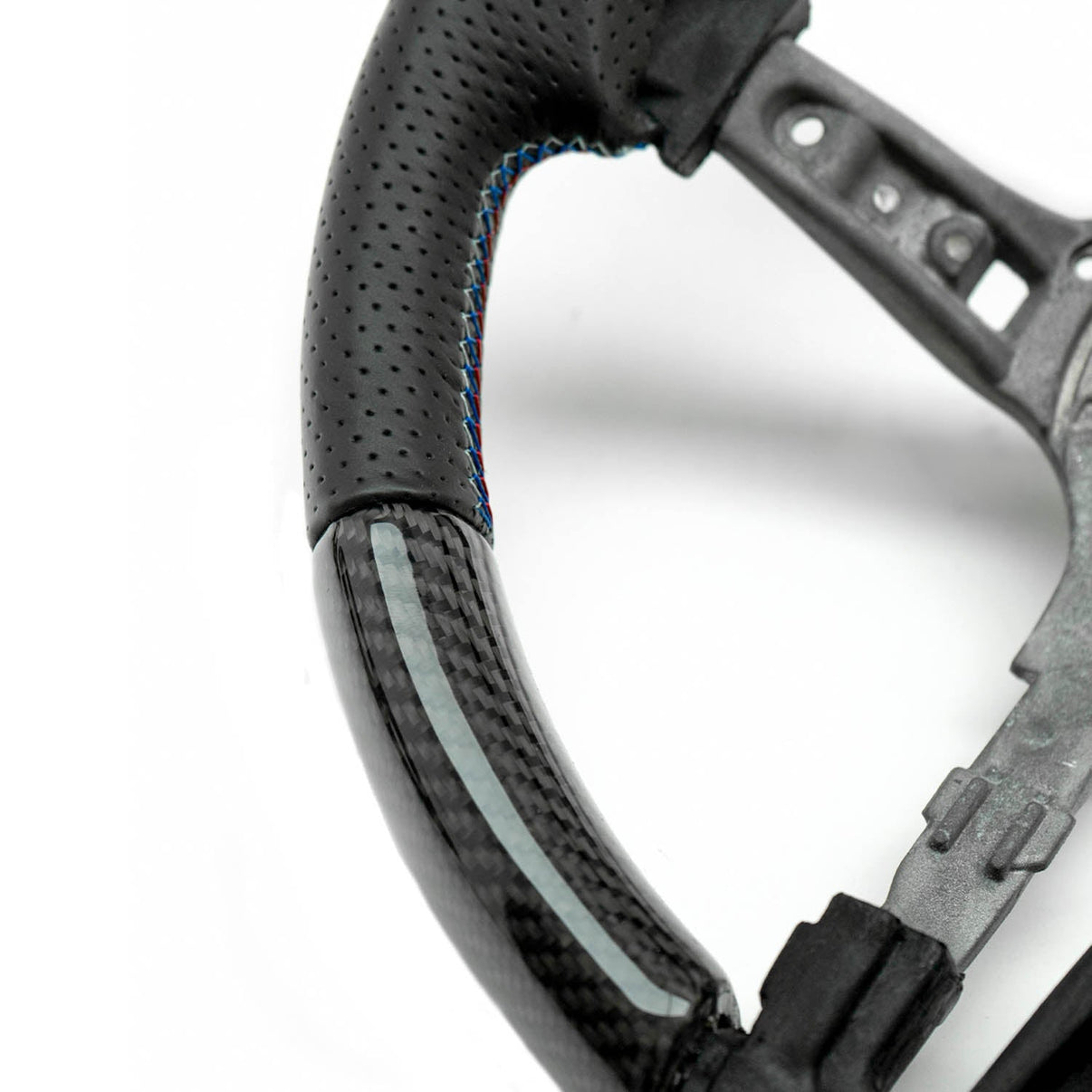 SHFT BMW F Series Round Steering Wheel In Gloss Carbon Fibre & Perforated Leather