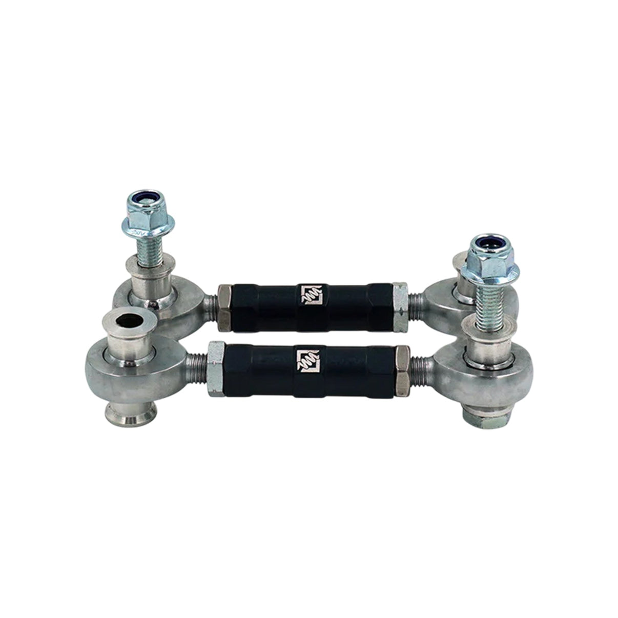As a result, the anti-roll bar can end up colliding with the chassis or the suspension arms. With the Suspension Secrets adjustable rear drop links installed, the lengths of the drop links can be readjusted in order to sit the anti-roll bar back into its optimum position. Another added benefit of installing these adjustable rear drop links is when corner weighting your car after installing coilovers. During corner weighting, the ride height at each of the four corners will be slightly different. This difference can lead to the anti-roll bar being uneven. This unevenness will create tension in the anti-roll bar, which will make your car’s handling very uneven and unpredictable between left and right corners. The adjustable drop links allow you remove the tension from the anti-roll bar, helping the car to handle far more predictably.