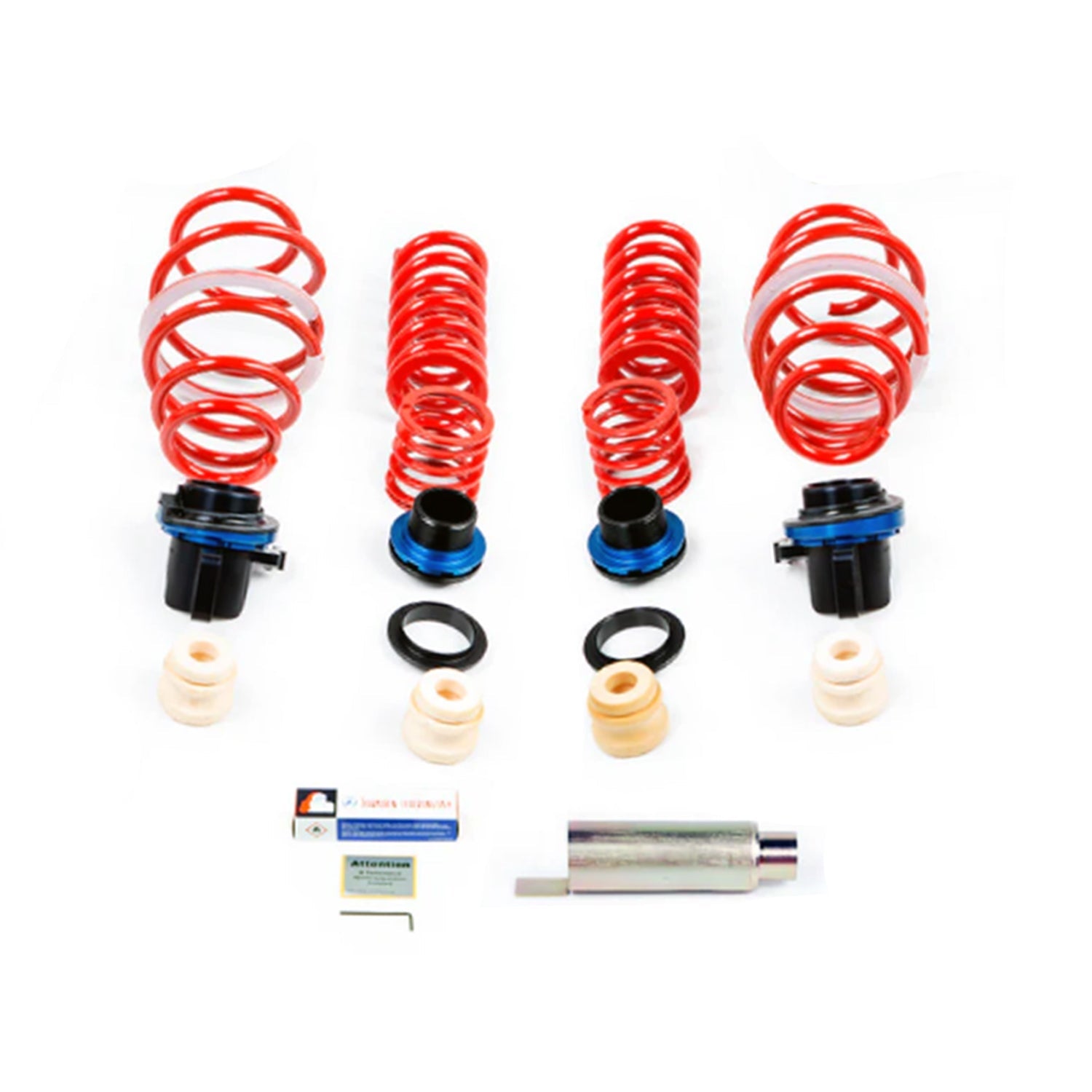 Includes front and rear springs with threaded collars for adjustment