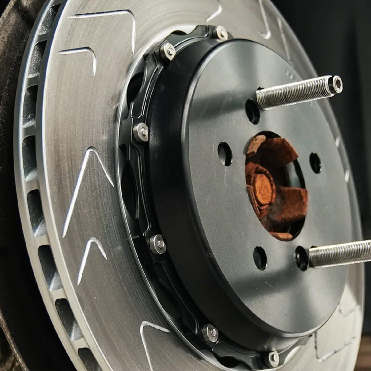 Designed specifically for the BMW F80 M3, F82 M4 and F87 M2, the MMX 370mm brake discs are grooved which offers superior heat management and reduces the likelihood of warping or cracking your discs under repeated heavy braking. This is ideal for a fast road & track application. The stock 6-piston brake calliper works very well and is only let down by the OEM front brake rotors.