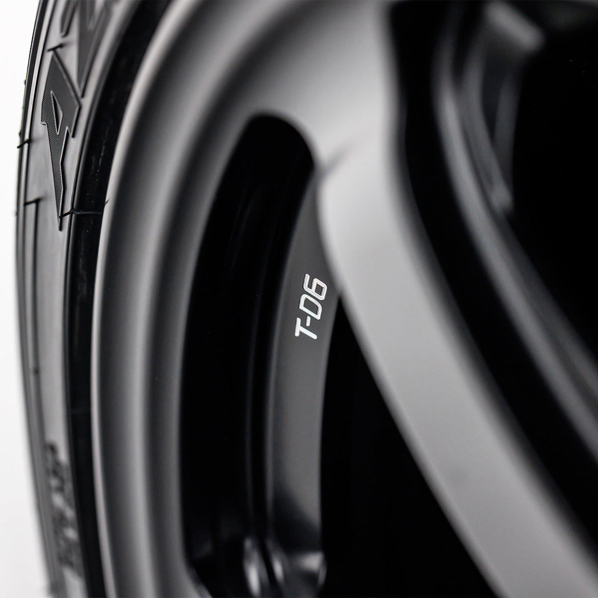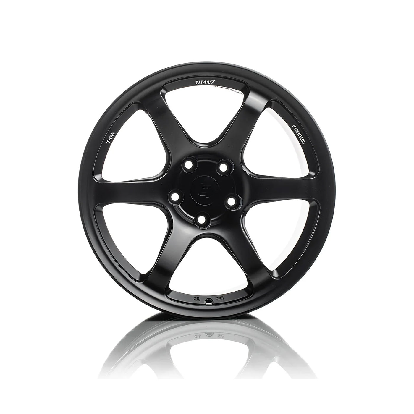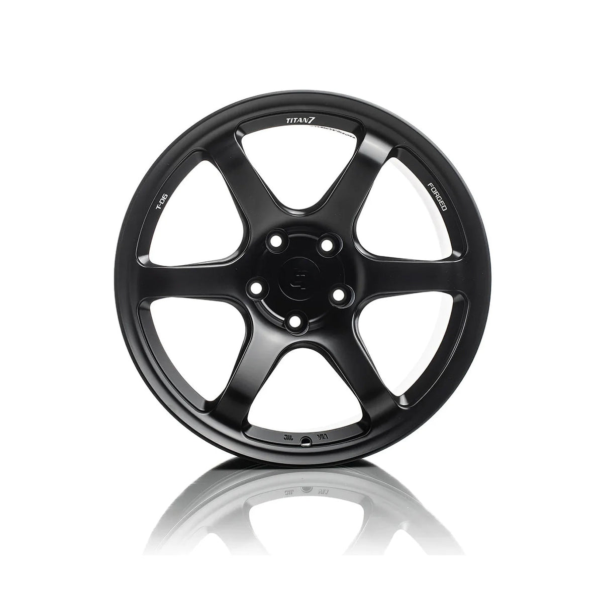 TITAN 7 T-D6 forged alloy wheels have been designed and tested extensively over a period of 3 years and, despite its simple design, the T-D6E is packed with technical features that take Titan 7's “Forged for All” ideology to the next level. A full-face design was chosen to give the wheel an excellent base for strength and rigidity. Next, we took the popular "I–Beam” spoke construction beyond the competition by connecting the machining work from the hub, spoke, and rim. This is a first for any wheel manufacturer. In keeping with Titan 7's commitment to both lightness and strength, a back rigid spoke tracer was employed for additional strength and stiffness. You can see a sliver of material that goes a long way for performance. Extensive machining was also employed on the backside of the spoke to remove material for final weight optimisation. All of this was made possible by applying 10,000 Tons of industry-leading forging force.