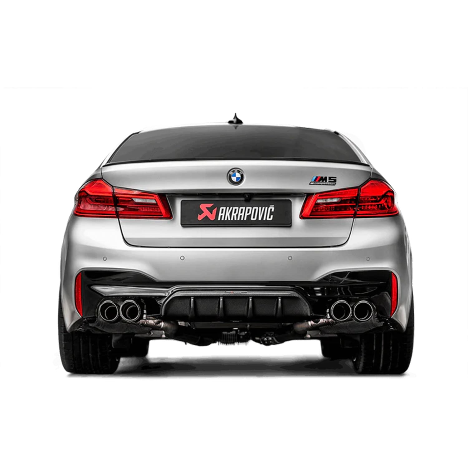 Enhance your BMW M5, M5 Competition, or M5 CS (F90, 2021–2023) with the Akrapovič Slip-On Line (Titanium) Exhaust System, designed for models equipped with OPF/GPF. Crafted from high-grade lightweight titanium, with some components cast in Akrapovič's own foundry, this system significantly reduces the exhaust system's weight, improving overall vehicle handling and performance. Engineered to deliver power and torque gains throughout the RPM range, it enhances responsiveness and drivability, with the most notable improvements in the lower RPMs. The system produces a distinctly different sound from the stock exhaust, most noticeable during shifting, backfiring, and acceleration, providing a more engaging driving experience. The Slip-On Line integrates seamlessly with the BMW M5's existing hardware, ensuring a perfect fit and finish. Upgrade your vehicle's performance and auditory experience with this premium exhaust system.