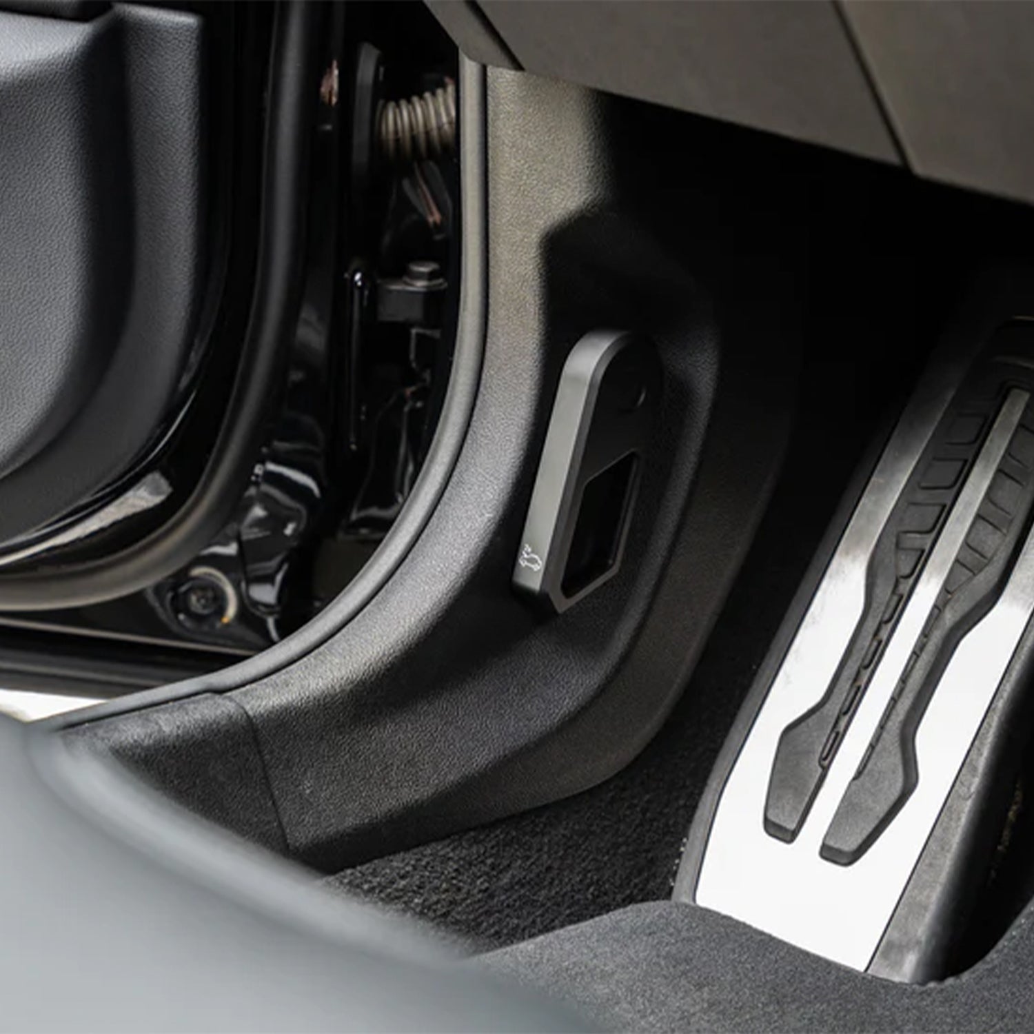 The Carbonex BMW bonnet / hood release handle for the BMW F90 M5 and F92 M8 is a unique and great-value interior modification that replaces the cheap, flimsy plastic OEM hood latch handle. Machined using aircraft grade T6 billet aluminium, this upgraded Carbonex bonnet release handle is anodised for ultimate wear resistance.