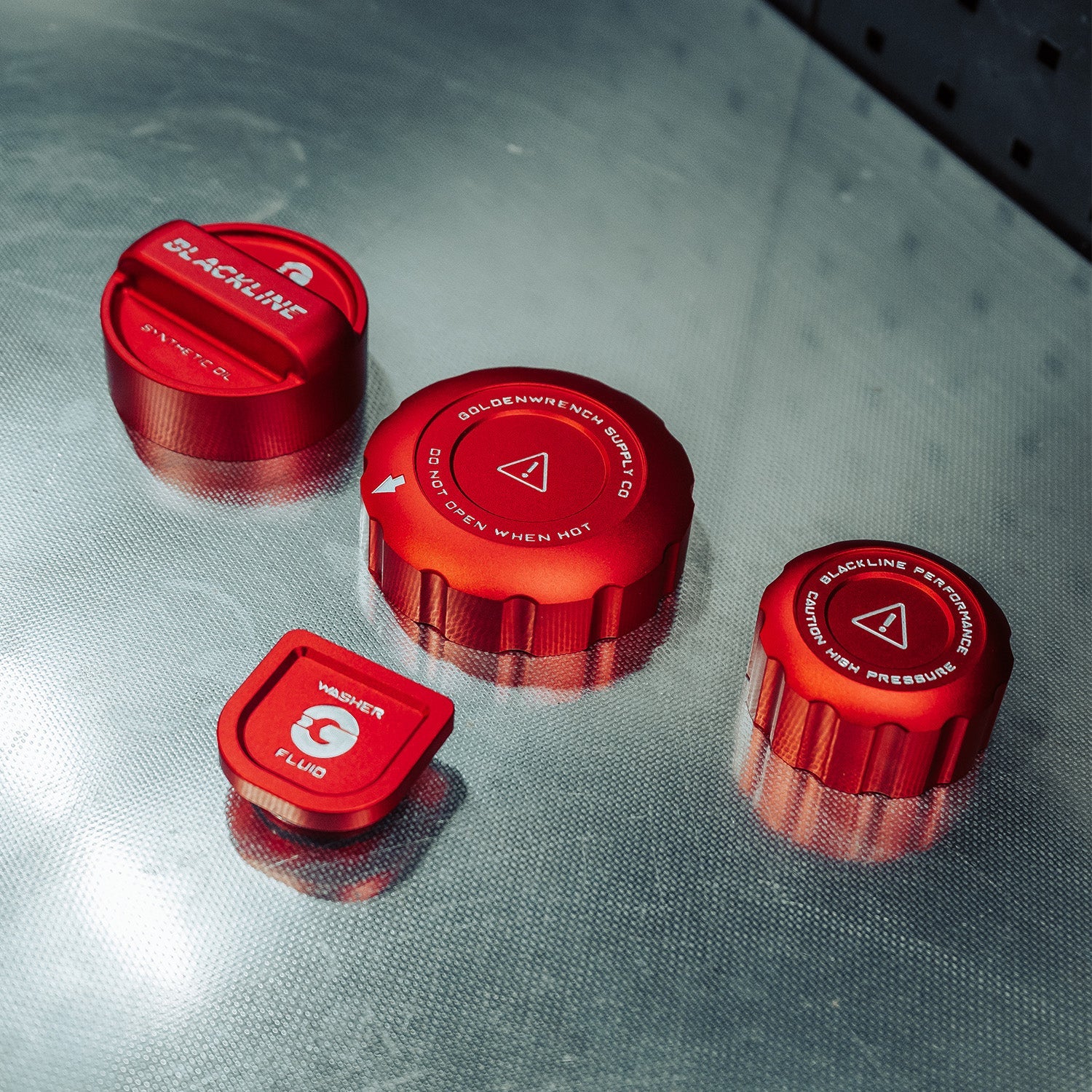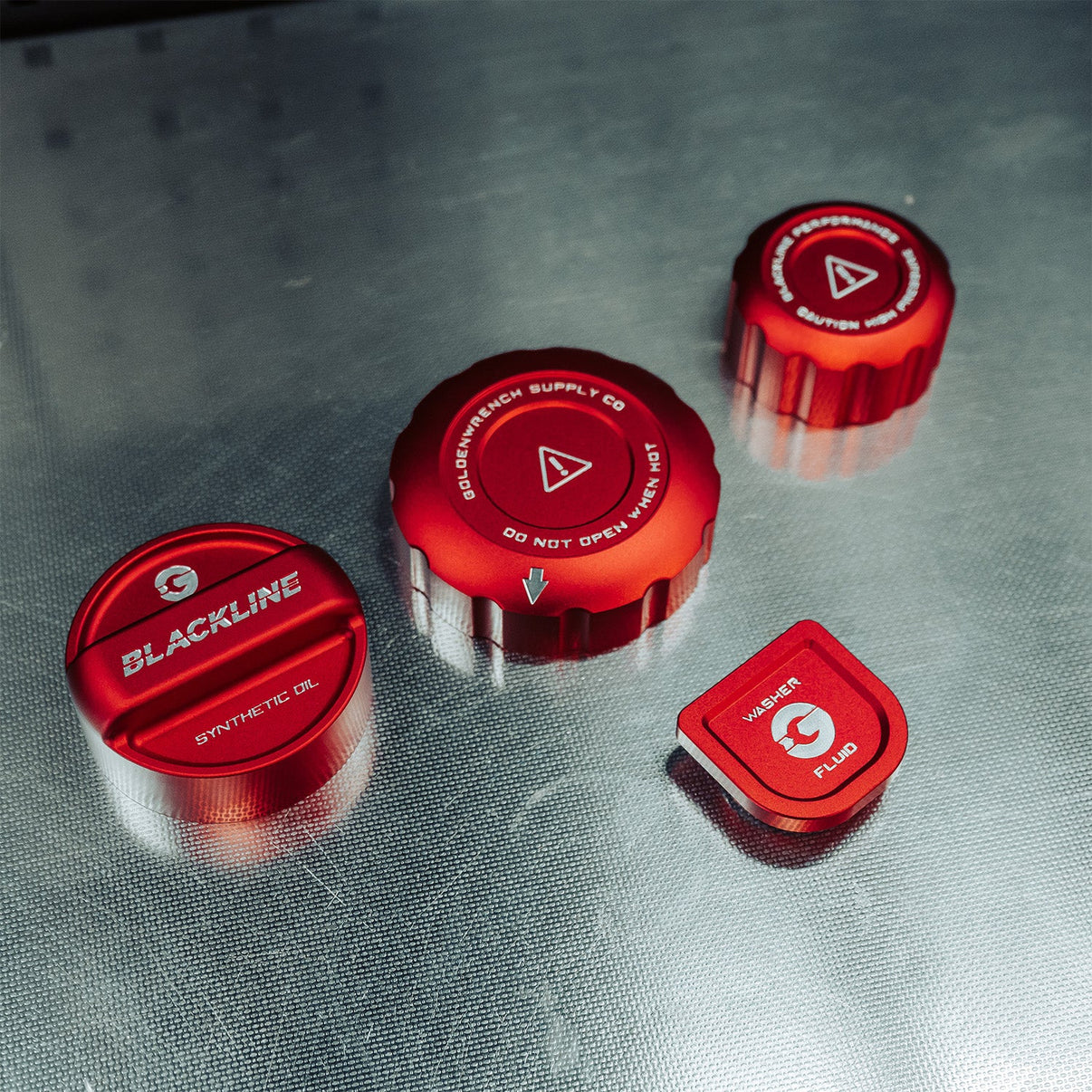 Give the very plain plastic factory oil and coolant caps an upgrade with a brand new BLACKLINE Performance Engine Cap Set. Each cap is CNC formed from T6 Aluminium. All logos and decorations are finalised through our precision 3D milling process, machined into each cap for the ultimate premium finish. The BLACKLINE Performance Engine Cap Set will only fit S63 & S68 Engine model vehicles (e.g. G90/G99 M5, F95 X5M, F96 X6M etc.). Each cap set comes with a Billet Oil Cap Cover and Coolant Tank Cap Covers. These are not full cap replacements. The Billet Cap Covers attach to the top of your factory caps, installing easily in minutes.