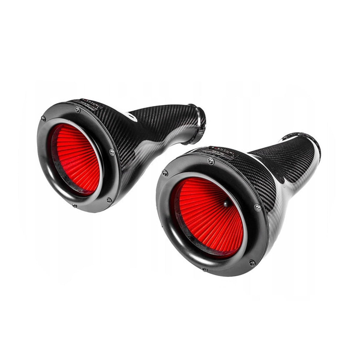 The F90 M5 & F92 M8 Eventuri system uses our Patented Carbon Fibre Housings with our Gen 2 bespoke filters, which provide an aerodynamically efficient airflow path from the filter to the turbos. Not just another cone filter with a heat shield but a unique design which invokes the Venturi effect and maintains laminar flow conditions to reduce the drag on the turbo.