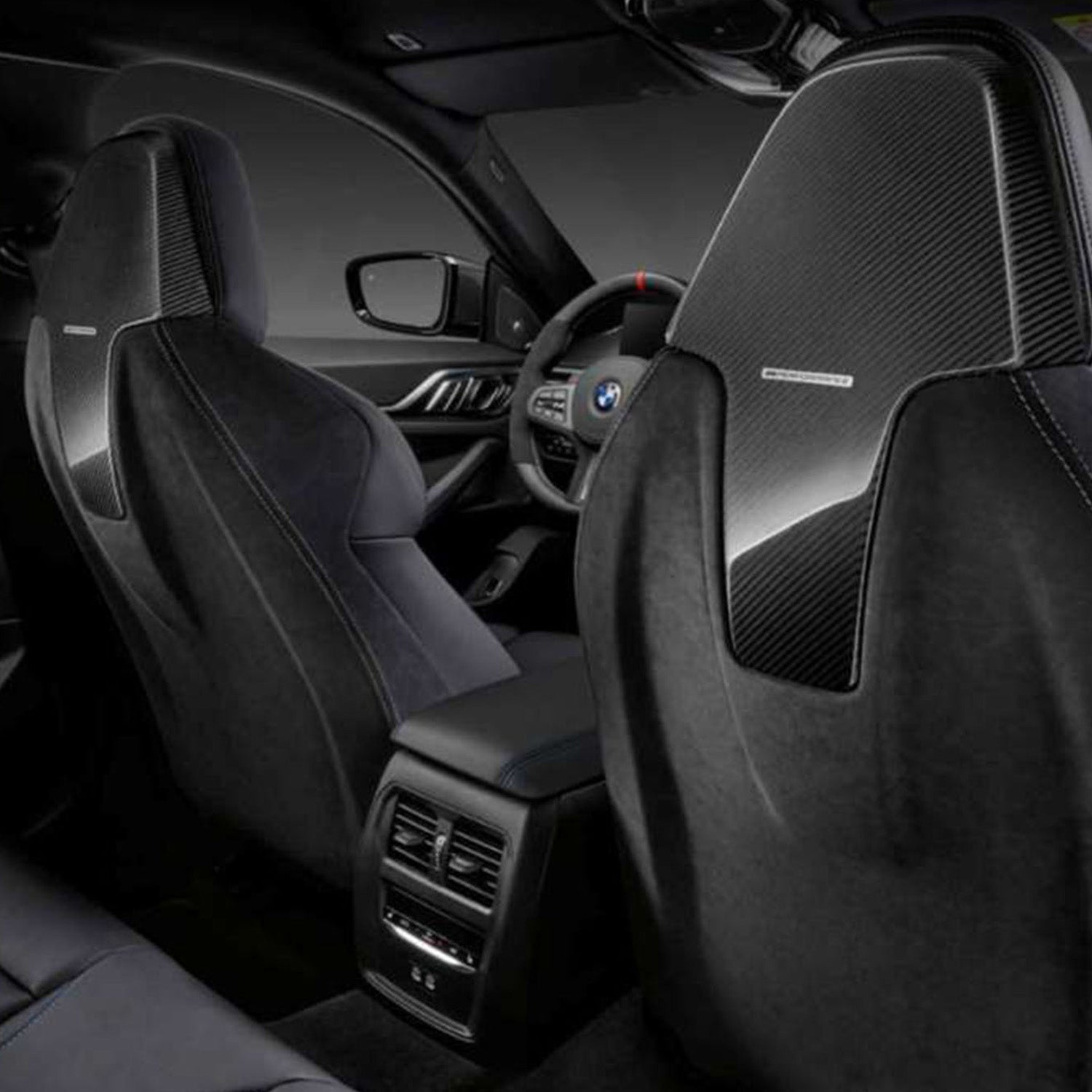 Genuine BMW M Performance G Series Seat Back Covers In Carbon Fibre and Alcantara are stunning full seatbacks for a range of high-performance BMW G Series models. This includes the G87 M2, G82 M4, G42 M240i & F92 M8 Coupe. With a beautiful weave and OEM quality, these seatback covers from completely transform the vehicle's interior.