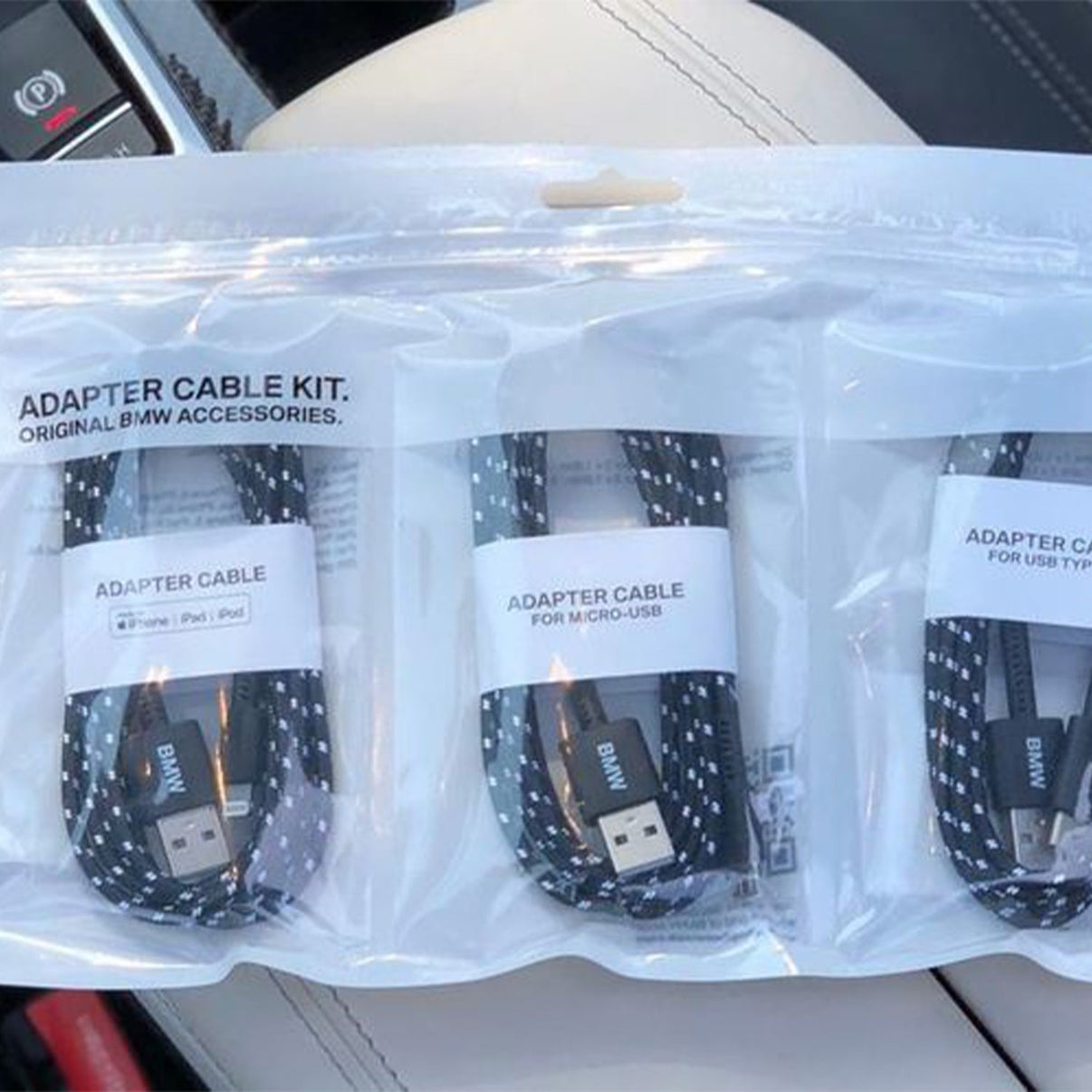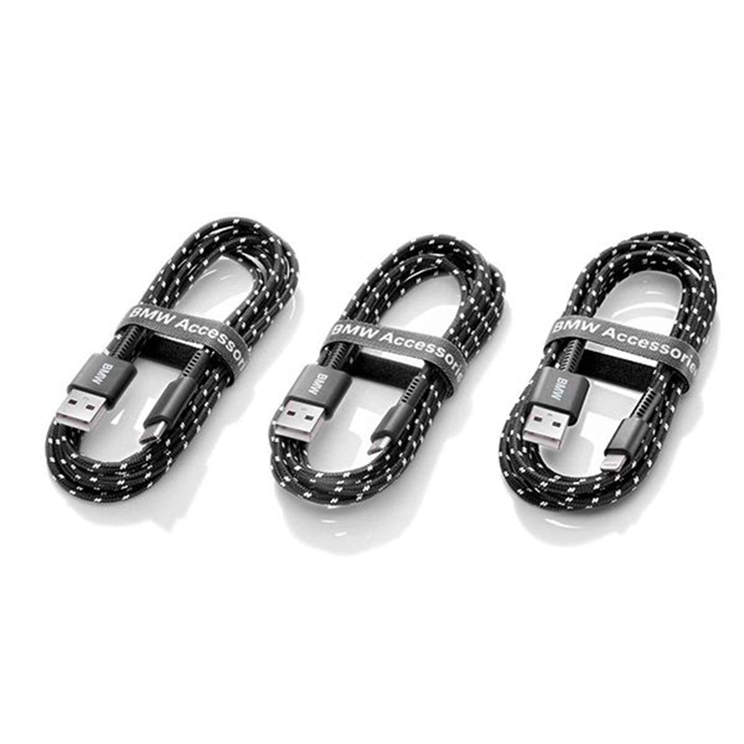 Introducing the BMW OEM 3-piece Adapter Cable Kit (Lightning, Micro-USB and USB Type C) car charger set. These cables are convenient accessories for keeping a device powered up no matter where your travels take you. These cables are constructed from braided wiring and reinforced junctions. Cable ends are made of metal and utilise high-grade electrical components.