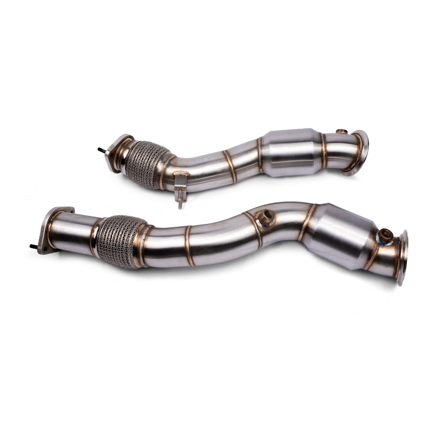 VRSF are proud to introduce their Track Limited Racing Downpipes for your F97 & F98 BMW X3M & X4M. These stainless steel tube downpipes are the best bang for the buck mod available for your S58, with gains from 30 whp & 35 wtq as a direct bolt-on and gains of up to 60 whp and 100 wtq when paired with a DME remap. By replacing the restrictive catalytic converter in the factory downpipes with our high flow, decat downpipe, back pressure is significantly reduced which results in faster spool, an increase in power & a more aggressive exhaust note.