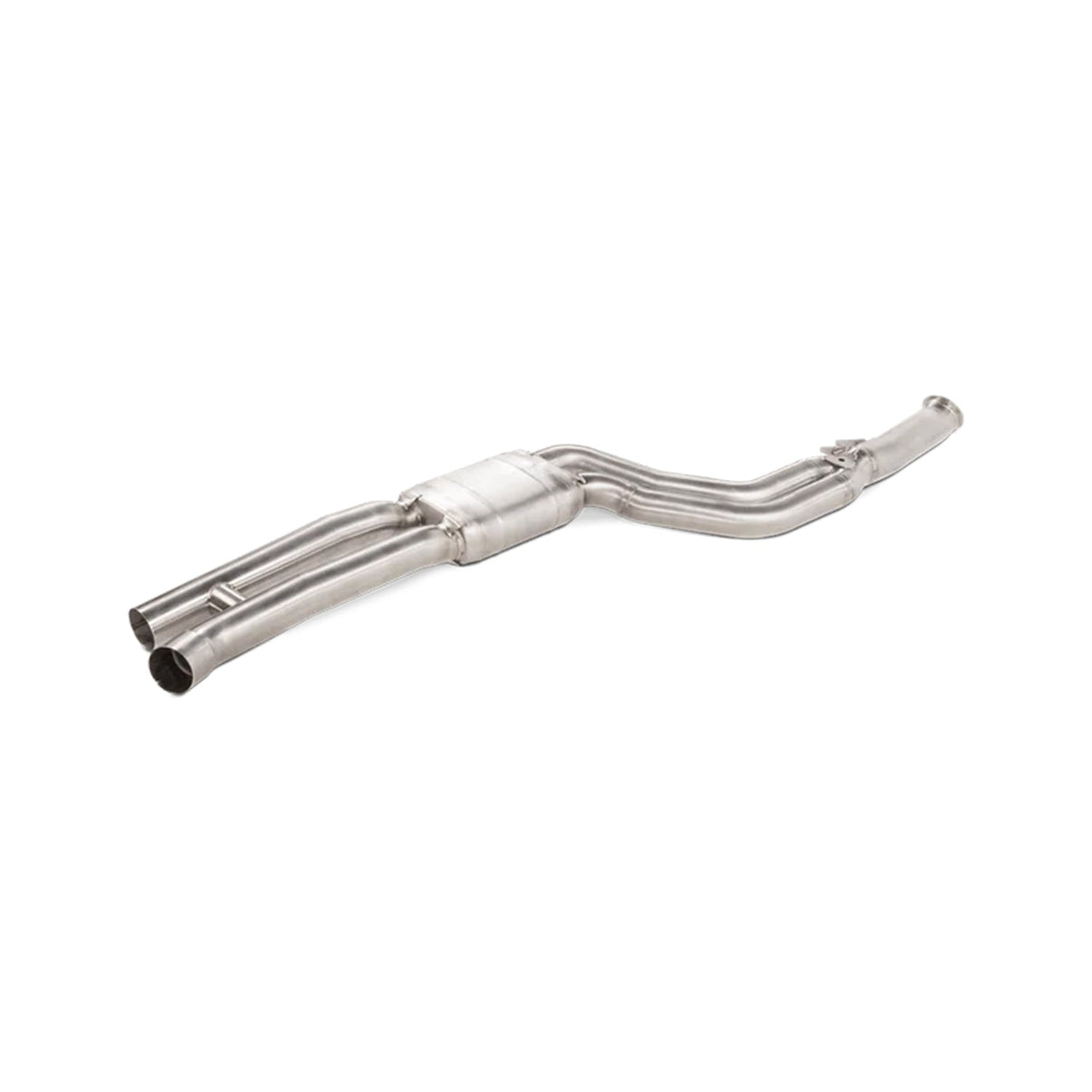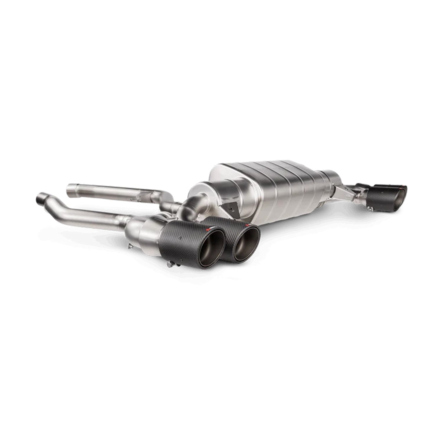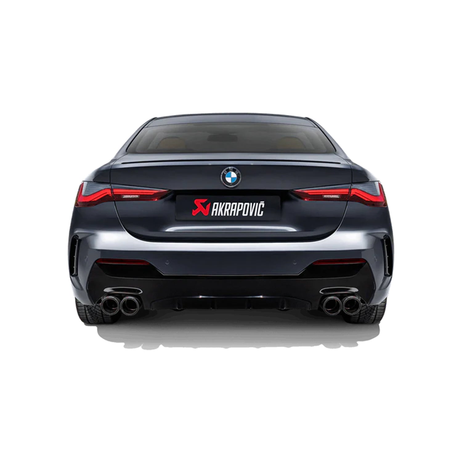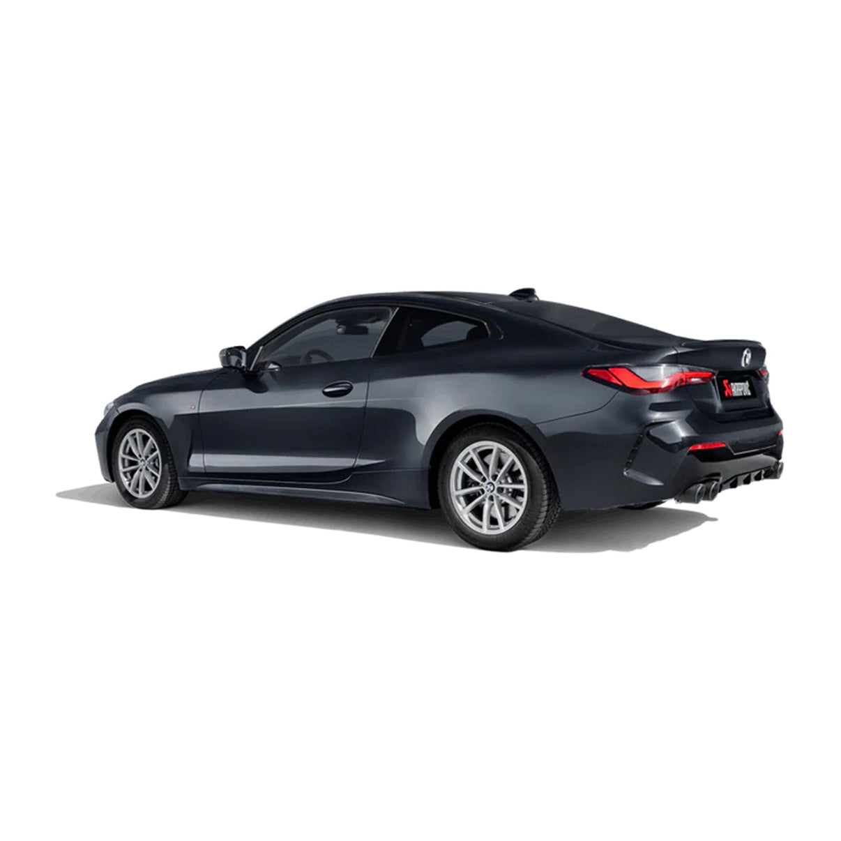 The Akrapovic BMW G22 & G23 M440i evolution line titanium exhaust is ahigh-grade lightweight titaniumsystem, finished withhand-crafted carbon-fibre tailpipesand ahigh-grade austenitic stainless-steellink pipe set. Thevalves on each sideare calculated to tailor the sound, andtwo acoustic reflectorsare fitted on the tailpipes to guide the sound into the car’s cabin. Because the Akrapovič Evolution Line (Titanium) exhaust system has two valves, one more than the stock configuration, aTNG controller is includedin the product to activate the additional exhaust valve. To make the sound experience even more unique, there aretwo tuned resonators– developed especially for this new engine – producing a deep, rich, and sporty sound with no unwanted drone or streaming, perfectly aligned with the straight six-cylinder engine. It weighs 21.7 kg, which is 23% lighter than stock. Power gains of 8.7 kW (11.8 hp) at 5,600 rpm and torque increases of 17.1 Nm at 4,100 rpm were recorded when tested on the Akrapovič dyno against a BMW M440i with a standard stock exhaust.Special parts are castin the Akrapovič in-house foundry to create the intricate and complex items needed for this system. Meant for track use only and for non-OPF vehicles.