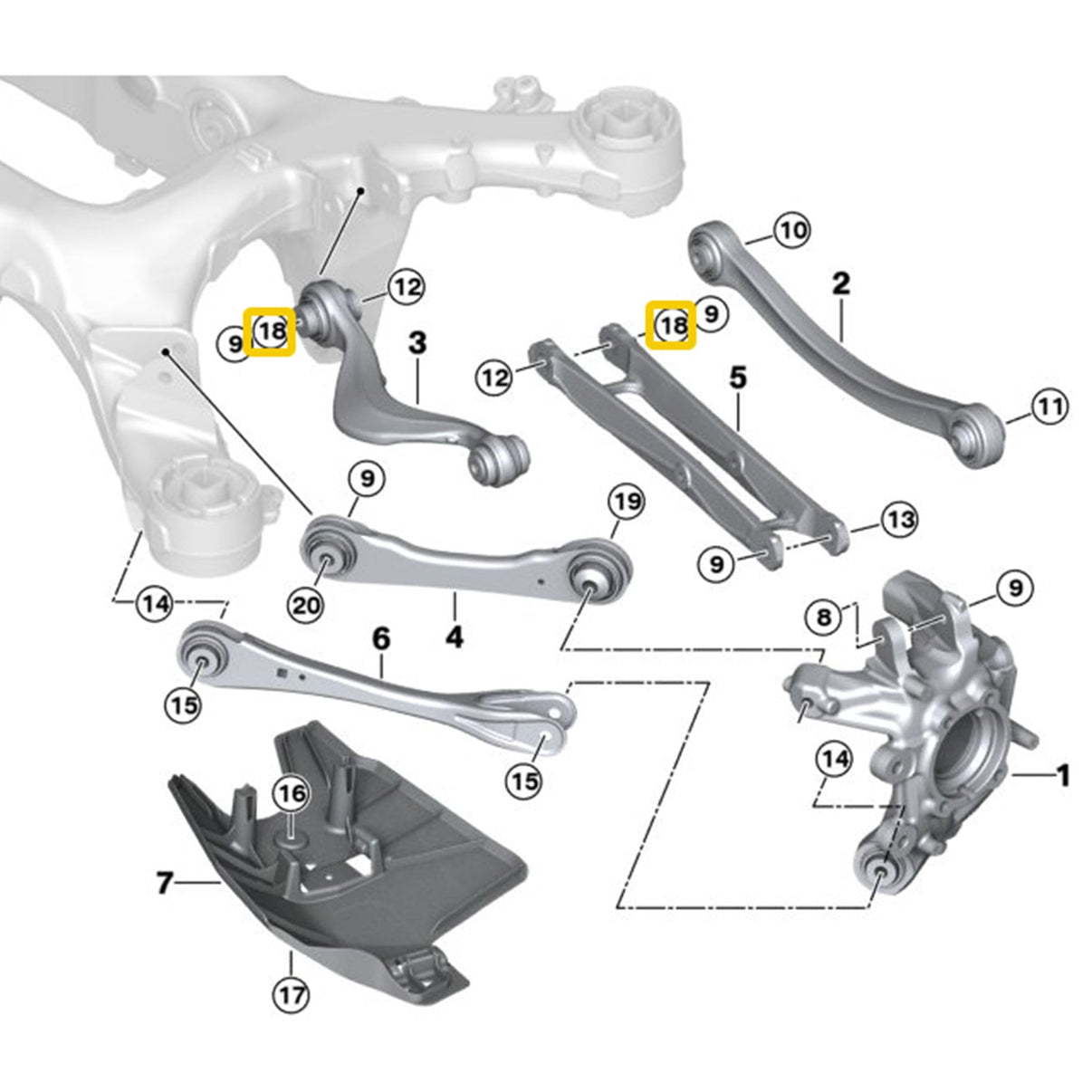 Ensure precise rear suspension alignment and long-term durability with the Genuine BMW OEM Crescent (part number 33306874239). Designed to work in conjunction with BMW’s eccentric camber bolts, this high-quality component supports correct positioning and secure fastening of the rear axle arms. Manufactured to BMW’s exact specifications, it guarantees a perfect fit and factory-level performance across a wide range of modern BMW models. Whether you're performing a full rear suspension refresh or replacing worn hardware, this crescent is essential for maintaining chassis integrity and geometry.