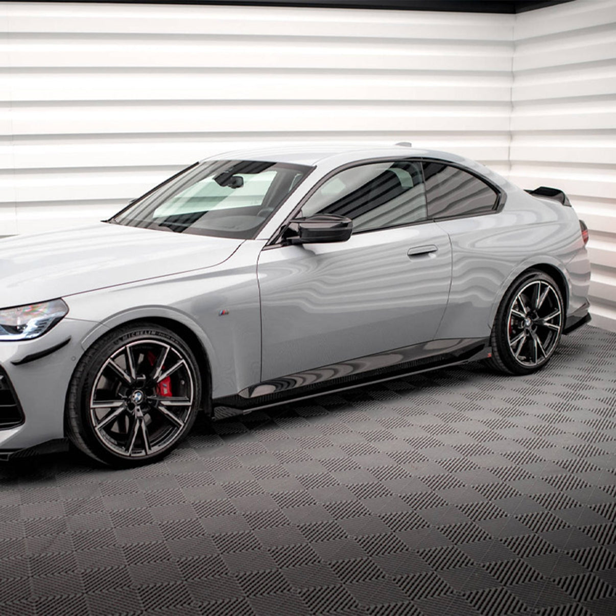 Maxton Design street pro black side skirts with flaps for the BMW G42 2 Series coupe are manufactured from high-quality ABS to provide a durable, aggressive and cost-effective styling upgrade.