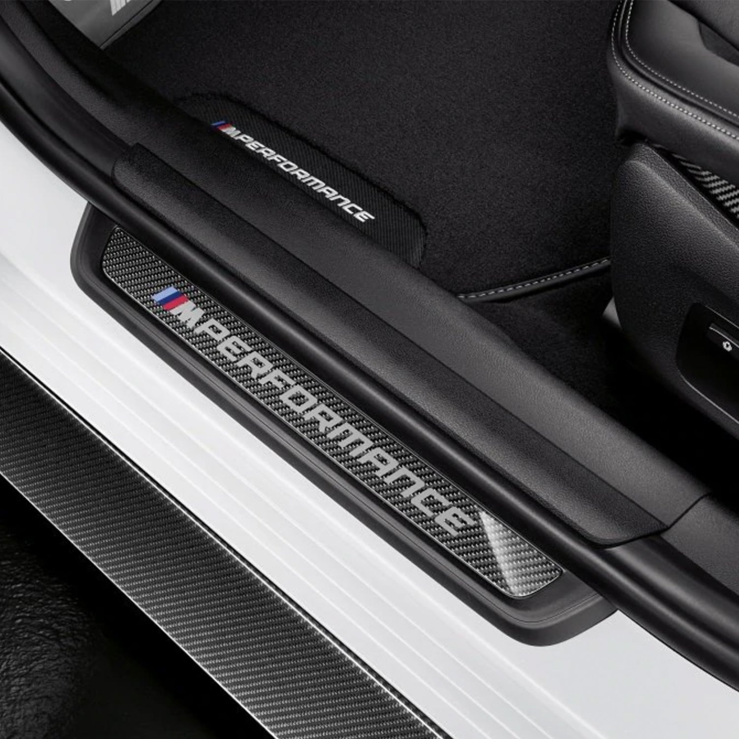 Genuine BMW M Performance carbon fibre door sill trims for the BMW G80 and G81 M3, as well as the G20 and G21 3 Series, add a premium touch to your vehicle's interior that you'll notice every time you open the door. The smaller details like this can go a long way in making your BMW feel more special and personal. These carbon door sill work well with other M Performance products and add a more sporty and luxurious feel to the footwell.
