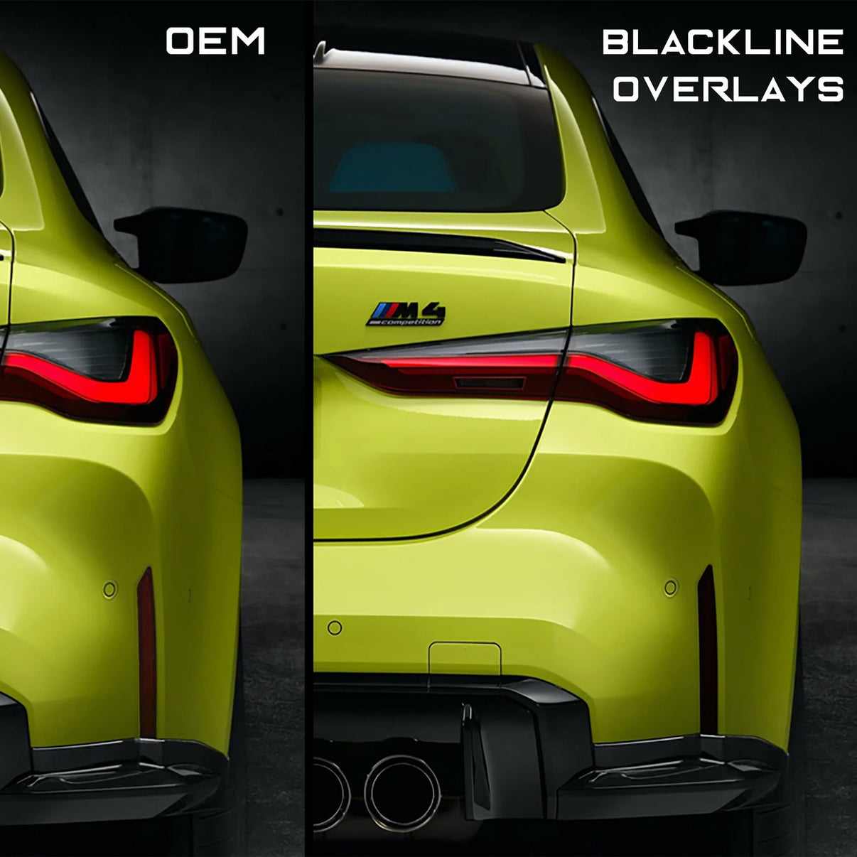 The Goldenwrench Supply BLACKLINE Rear Reflector Overlay Kit for the BMW G80/G81 M3 & G82/G83 M4 was designed and created to improve the appearance of the OEM rear reflector while retaining its intended functionality in a way that will compliment rear design of your vehicle and pair perfectly with our BLACKLINE Taillight Kit . The BMW M3/M4 BLACKLINE Rear Reflector Overlay Kit fits all G80 and G82 chassis M3 or M4 Competition model cars giving your vehicle that sleek and stylish modern look for years to last. The kit uses a 2 layered film system (no assembly required): a dark smoked colour film base topped with a black patterned layer of the iconic distinct BMW M Division honeycomb print as seen in many mesh designs today used on many of the M vehicles on the market today. To retain the safety functions of the factory piece, GoldenWrench Supply designed its 2 layered overlay system to go on top of the factory unit in order to keep its light reflecting properties of the OEM rear reflector when in use for oncoming vehicles, while keeping a dark smoked sleek appearance when not in use. Please note that this Overlay Kit only covers the rear reflector and does not come as an entire rear reflector assembly. Kit is designed for an extremely easy installation process and the removal of the factory rear reflector is not required for installation.