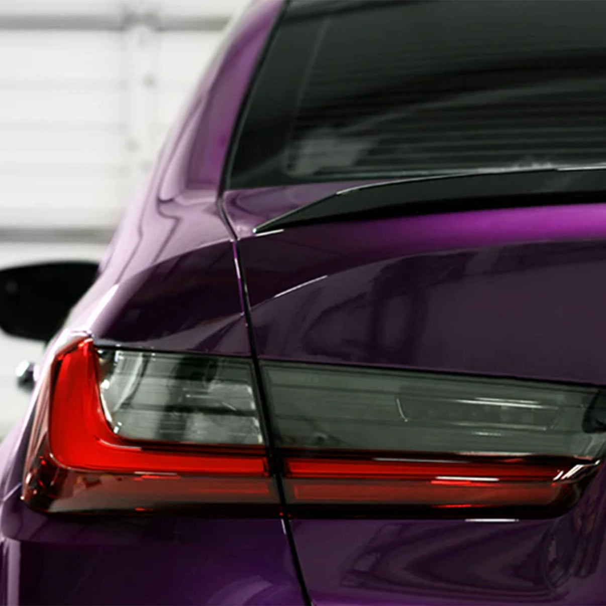 The Goldenwrench Supply BMW M3 & 3 Series Pre-LCI (G80/G20) BLACKLINE Taillight Overlay Kit fits most 2021+ BMW 3 Series Pre LCI model cars including the M3 and M3 Competition giving your vehicle that stylish modern look for years to last. This will fit base 3 series cars (e.g. 318i, 320i, 320e, M340i, M3, and M3 Competition vehicles and more). The film is coloured in medium smoked colour to mimic the design queues seen across modern BMWs. Please note that this Overlay Kit only covers the reverse signal indicator areas and does not cover the entire taillight.