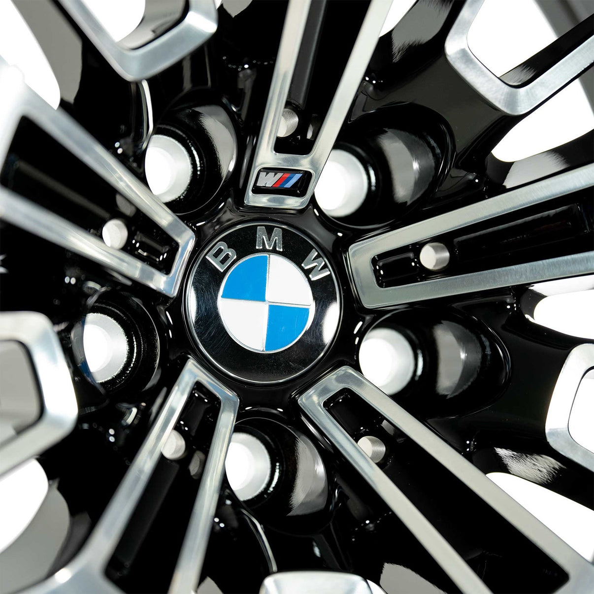 Genuine BMW 825M forged alloy wheels in Jet Black with a diamond cut finish. These alloy wheels are a staggered setup with 19" at the front and 20" at the rear. Please see the sizing information below.