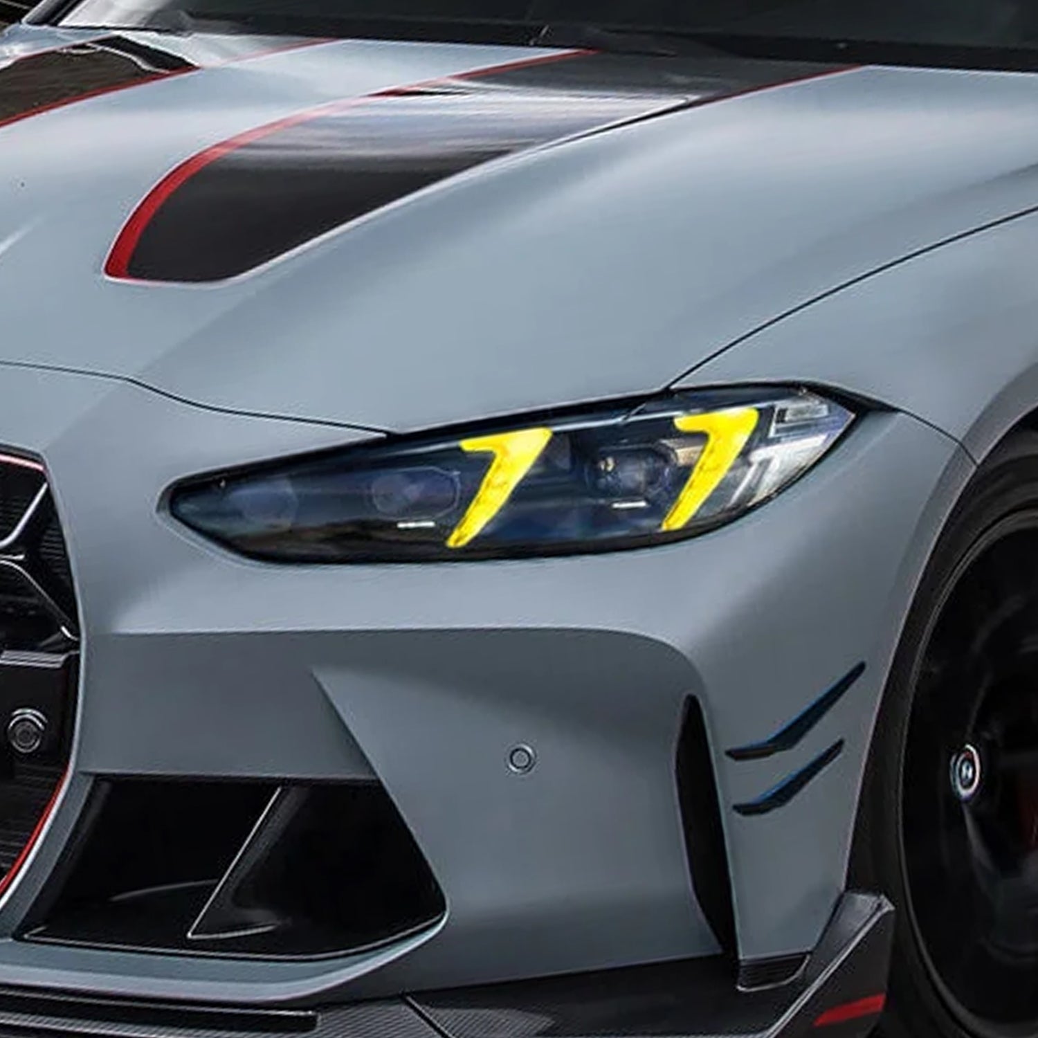 Set of Genuine BMW OEM CS LCI (facelift) front headlights for the BMW G80, G81 M3 and G82, G83 M4. These CS LCI headlights fit both LCI and pre-LCI vehicles, meaning they are the perfect way to bring your BMW right up to date with OEM BMW quality and fitment. Being the 'CS' versions, these headlights feature yellow daytime running lights when stationary, turning white again while driving.