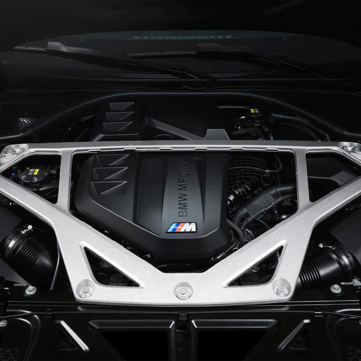 Genuine BMW G82 M4 CSL engine bay strut brace is a stand-out feature of the new M4 CSL. This strut brace can be easily retrofitted to non-CSL G8X vehicles.