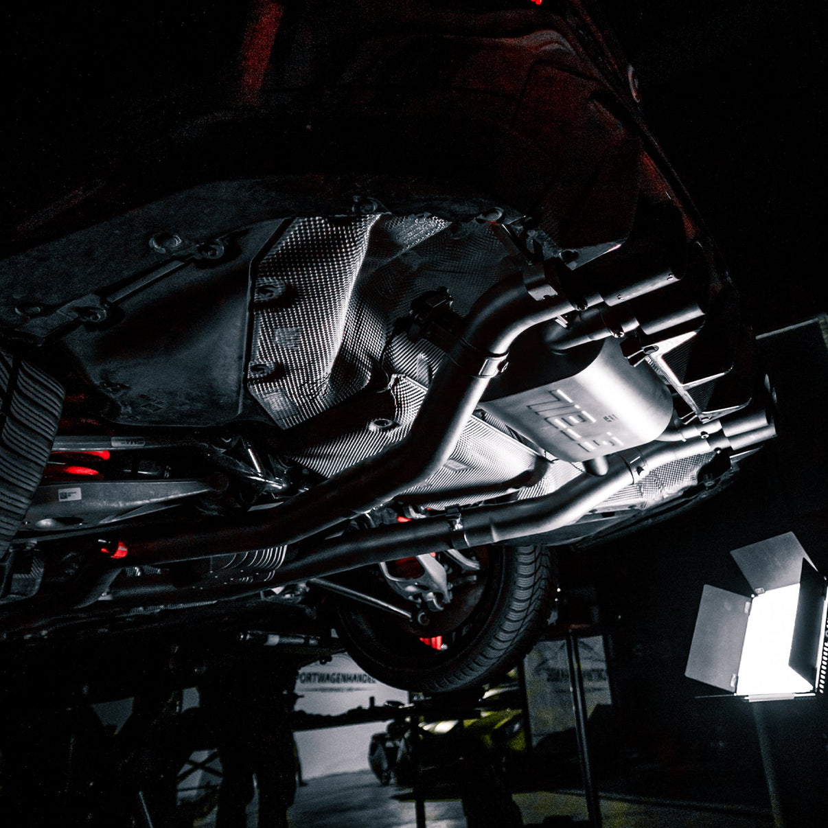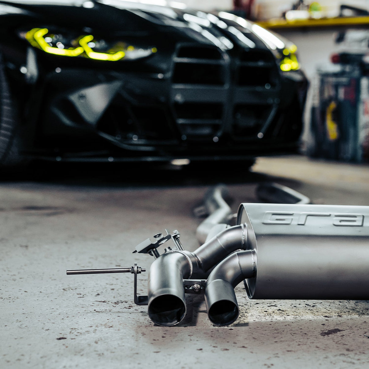 The Grail stainless steel upgraded exhaust system for the BMW G80, G81, G82 and G83 M3 and M4 vehicles produces an incredible sound. The Grail system transforms the driving experience of the S58-powered M3 and M4. Gone is the strangled rasp of the factory system - not to mention the sizeable weight saving! This exhaust system is an OPF-back, retaining the car's primary and secondary catalytic converters in place, as well as the OPF on UK/EU cars. If you have a US market vehicle, this system works great as an axle-back, by removing the restrictive resonator and replacing the flawed OEM backbox.