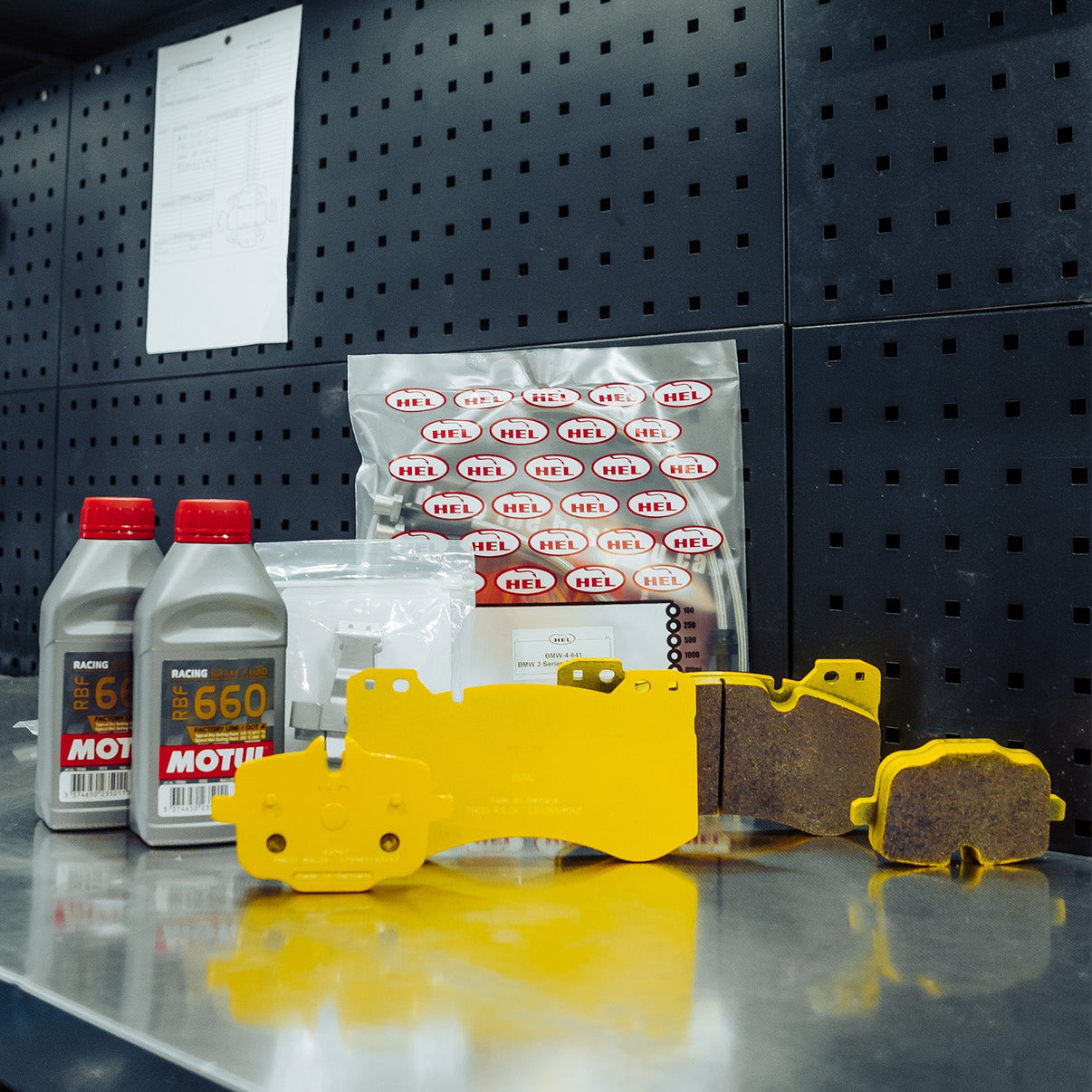 Upgrade the braking performance of your BMW G87 M2, G80 M3 or G82 M4 with Pagid Racing RSL29 Front & Rear Brake Pad Set + MOTUL RBF 660 Brake Fluid & HEL Brake Lines, engineered for exceptional stopping power, durability, and high-temperature resistance. This premium brake kit is ideal for track use and high-performance driving, offering a balance of fade-resistant braking and long pad life.