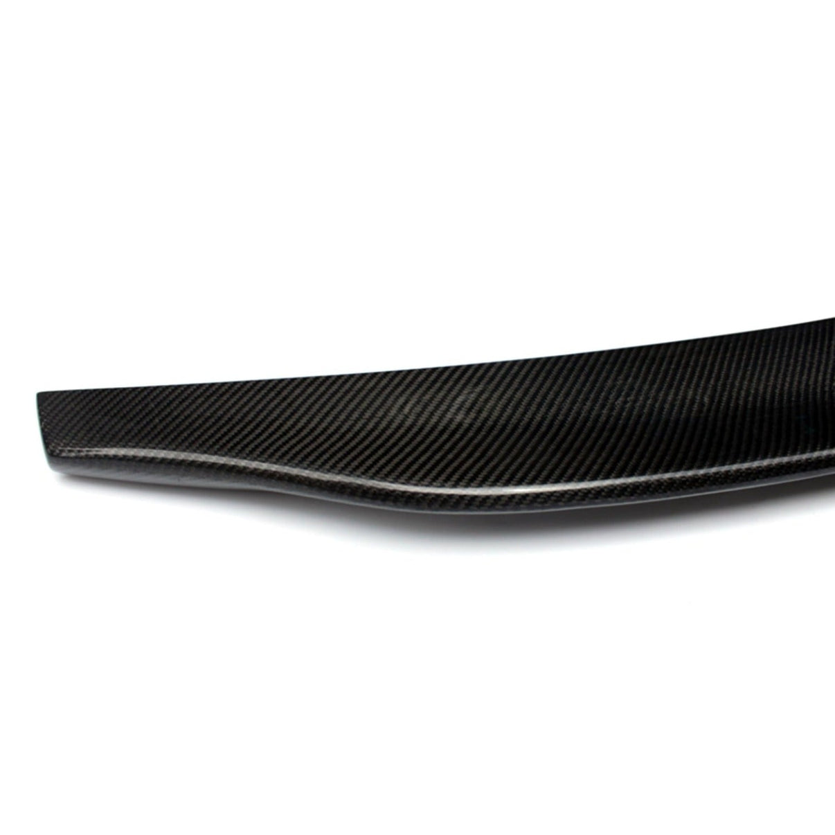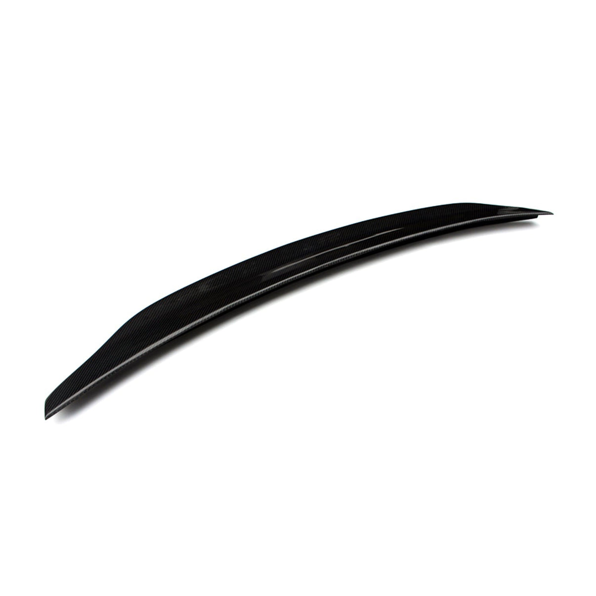 MHC Audi A3/S3 C Style Spoiler in Carbon Fibre. The design of this spoiler lip is an OEM+ style, following the lines of the factory spoiler lip, but bringing those lines to the next level. The C Style spoiler extends outwards while keeping a smooth consistent curve. It's designed for a direct fit that covers the entire edge of your rear boot.