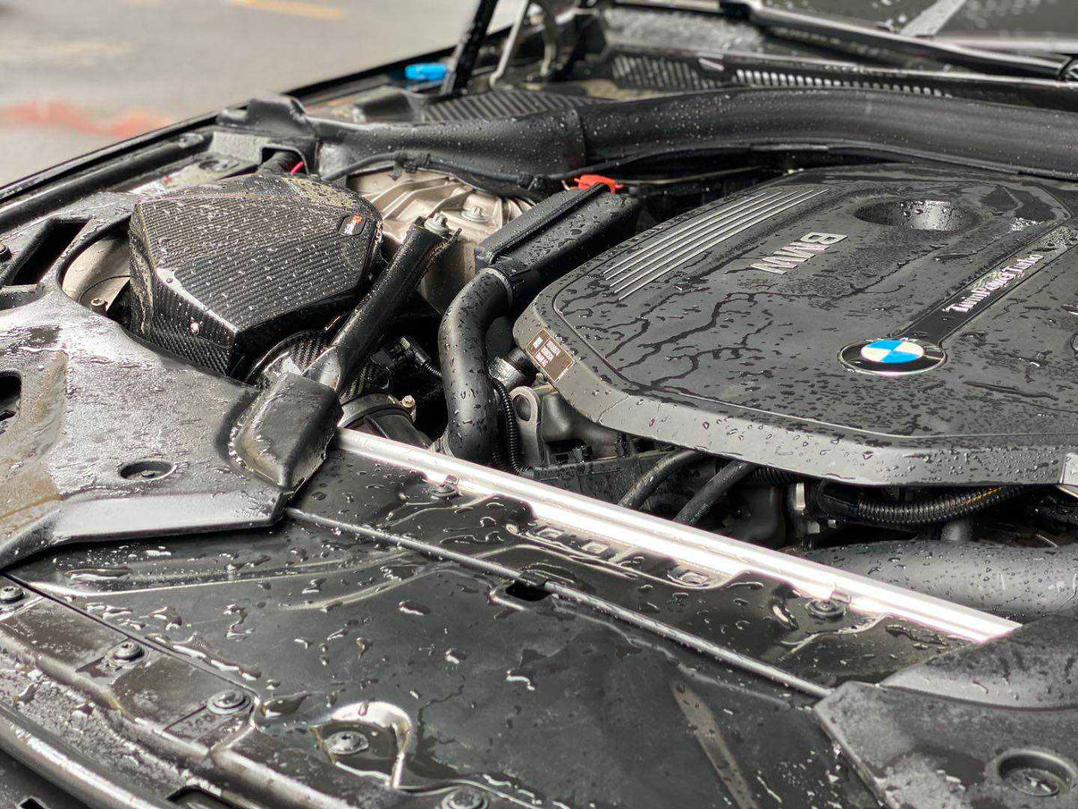 Upgrade your BMW 840i (G14, G15, G16) B58 3.0T engine with this Dry Carbon Fiber Cold Air Intake System. Engineered for performance enthusiasts, it delivers enhanced airflow, improved throttle response, and a lightweight, durable design. Crafted from premium dry carbon fiber, it boosts engine efficiency while giving your engine bay a sleek, high-performance look.
