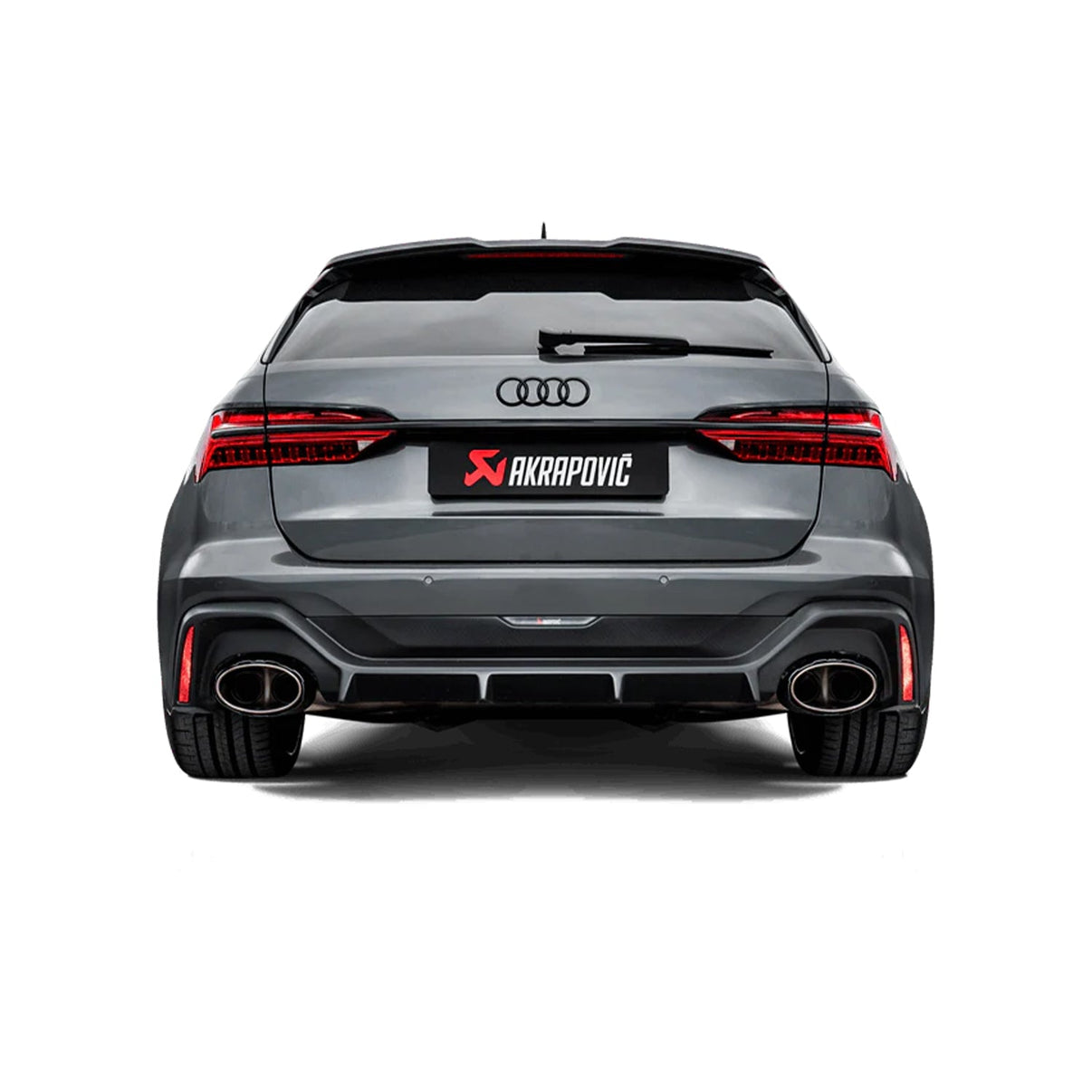The Akrapovic exhaust system for the C8 generation of Audi's RS6 and RS7 vehicles is manufactured using high-grade lightweight titanium. The Evolution Line exhaust system features a specially designed layout with one central and two side mufflers and a collector made from titanium, all leading from stainless steel link pipes with a larger diameter compared to stock and custom-made flex tubes, fully insulated where they attach to the downpipes.