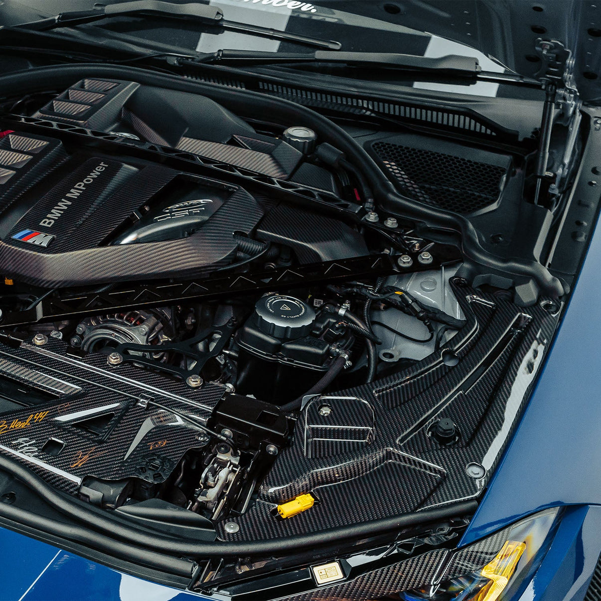 Enhance your engine bay with the CarbonBay BMW G80 M3 & G82 M4 Headlight Covers in Carbon Fibre. Designed for a precise fit, these premium carbon fibre alternator covers provide a sleek, high-performance look while protecting the rear of your headlights from dirt and debris.