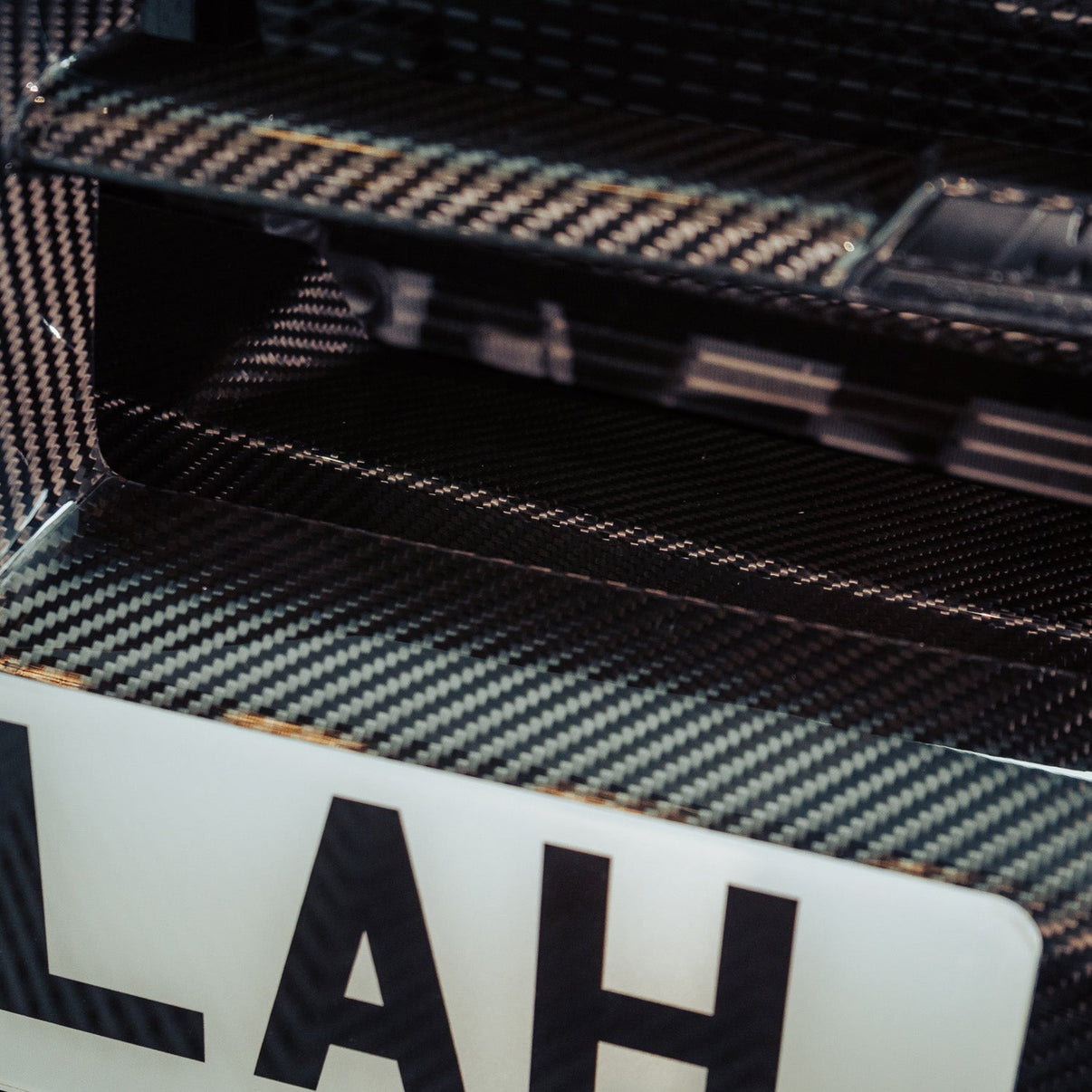 High-gloss carbon fibre finish for a premium aesthetic