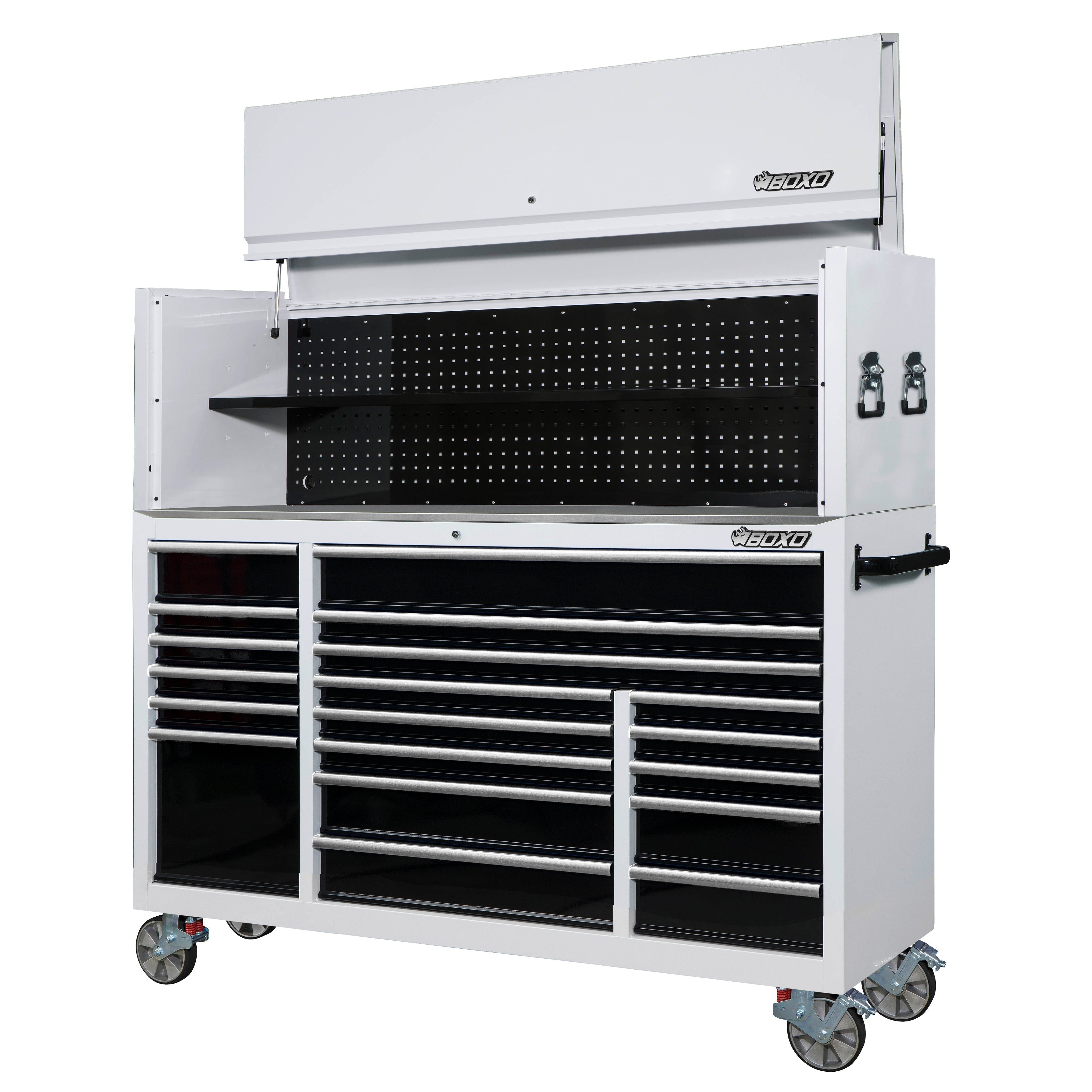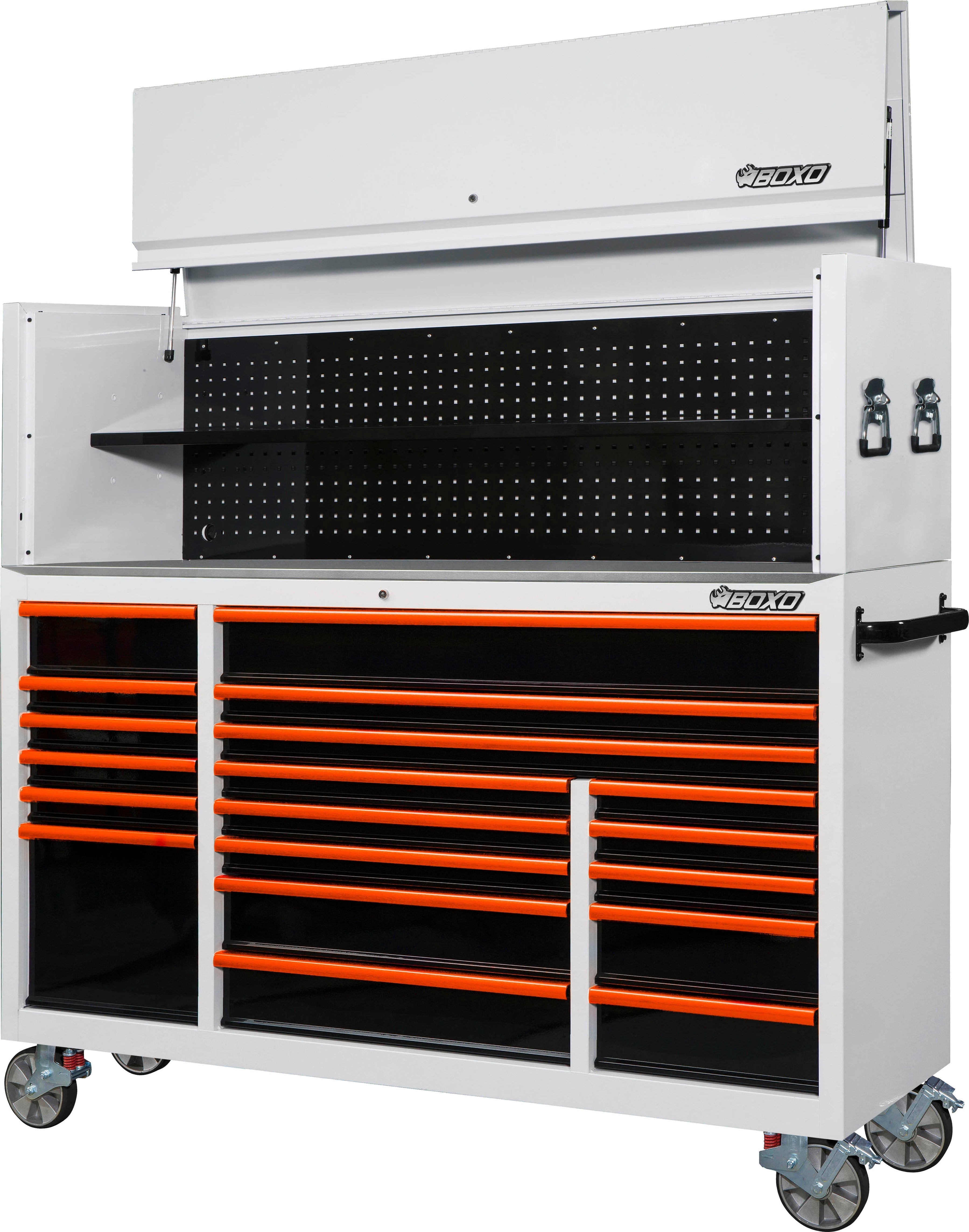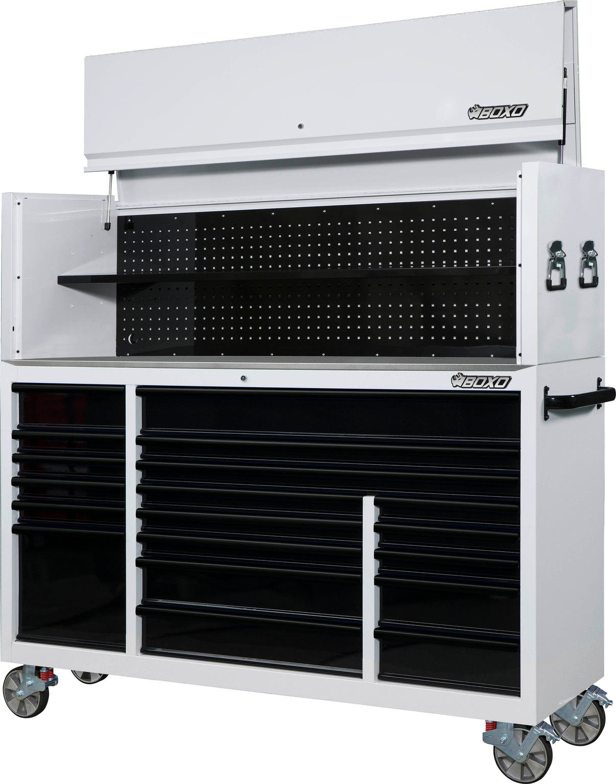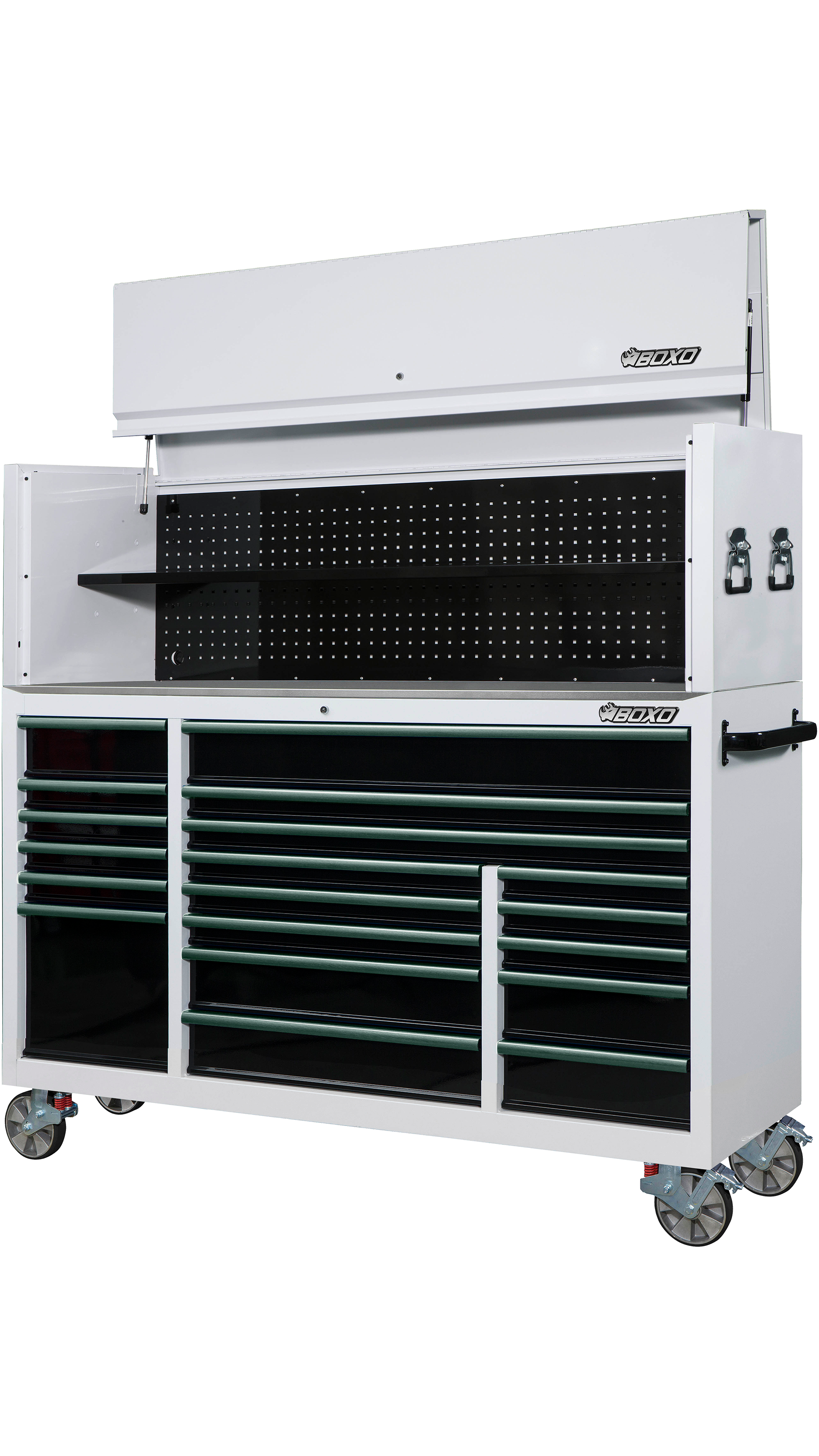 BOXO 72" 19 Drawer Roll Cabinet & Hutch with Drawer Trim Pack - White Body & Trim Colour Options