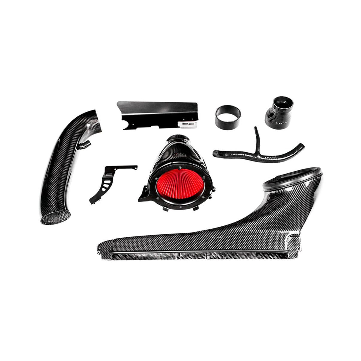 - Carbon Fibre Patented Venturi Filter Housing with 103mm Outlet - Bespoke High Flow Dry Cone Filter - Carbon Fibre Inlet Duct - Carbon Fibre Tube with 103mm ID OPF (DWNA) Breather adapter - Heat Shield with Gold Reflective Backing - Laser Cut Stainless Steel Brackets - Silicon Breather Hose - Silicon Couplers and Reducer