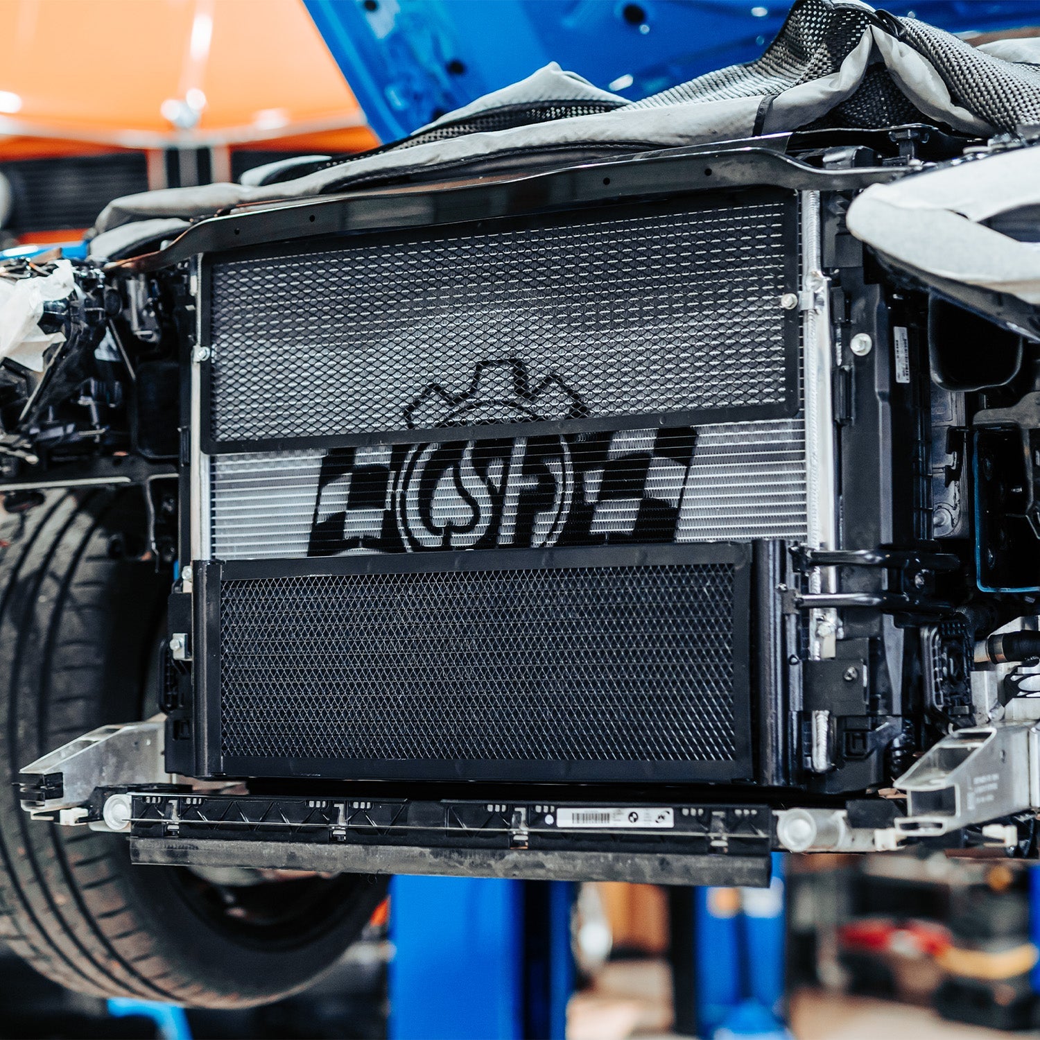 CSF knows the kind of punishment the front of a car can take on or off the track. The wrong bit of debris flying through the front grille can quickly punch a hole in a cooler. Because the Transmission cooler sits at the very front of the centre cooling stack, it is quite vulnerable to damage. In addition, “open face” race-style grilles have become quite popular on the G8X. These grilles can add to the risk of debris passing through. The factory grille is the only form of protection for the OEM transmission cooler. However, this still isn’t the level of protection many race teams and enthusiasts are comfortable with. To address this concern, CSF has incorporated a replaceable rock guard to keep your cooler safe and your G8X running strong in the event of debris making it through the front grille.