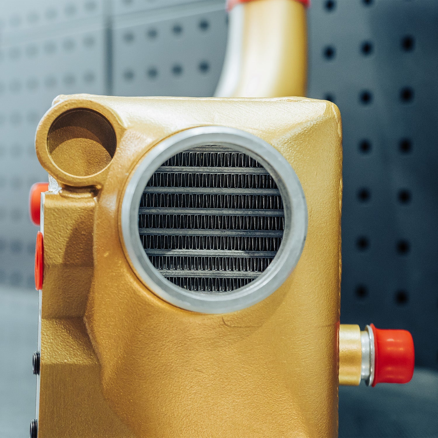TIG-welded cast aluminium end tanks – replaces weak crimped-on OEM plastic tanks.