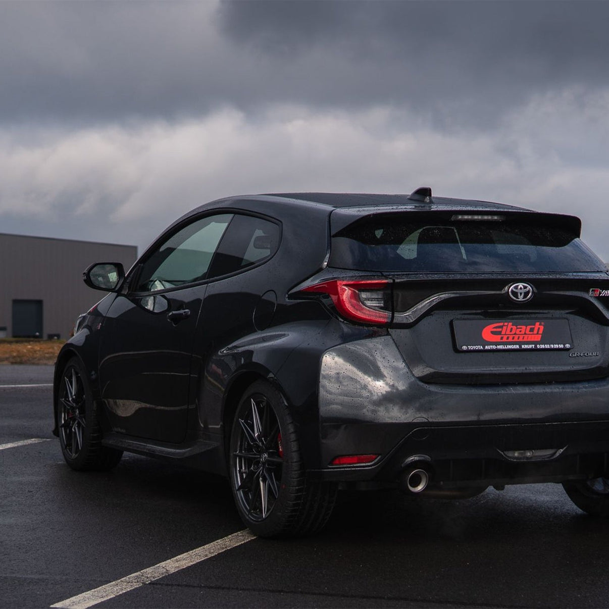 The Eibach lowering springs for the GR Yaris lower the front ride height by 30mm and the rear ride height by approximately 25mm. This levels the car out, improving overall balance.