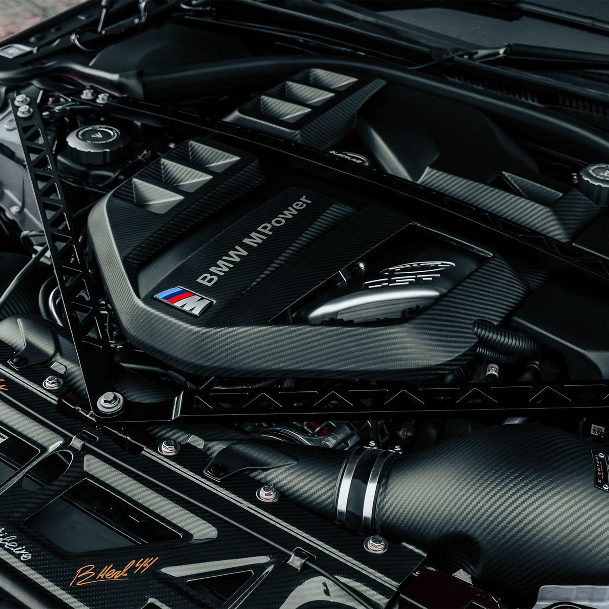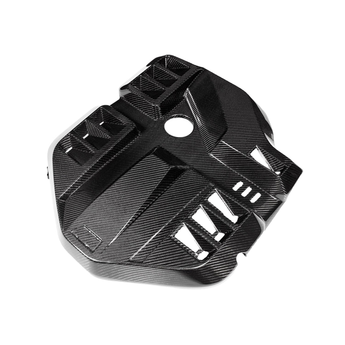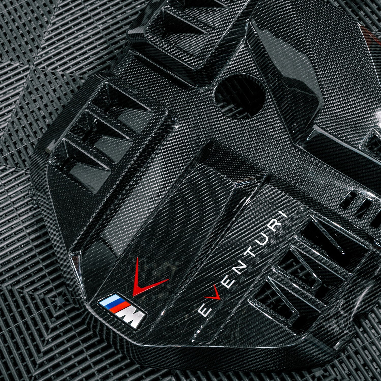 This is the perfect accessory to accompany the Eventuri carbon fibre air intake system for the G8X platform. The Eventuri engine cover extends across the charge cooler while still allowing for sufficient heat dissipation with added venting. For ease of installation, the Eventuri G8X carbon engine cover uses the OEM mounts.