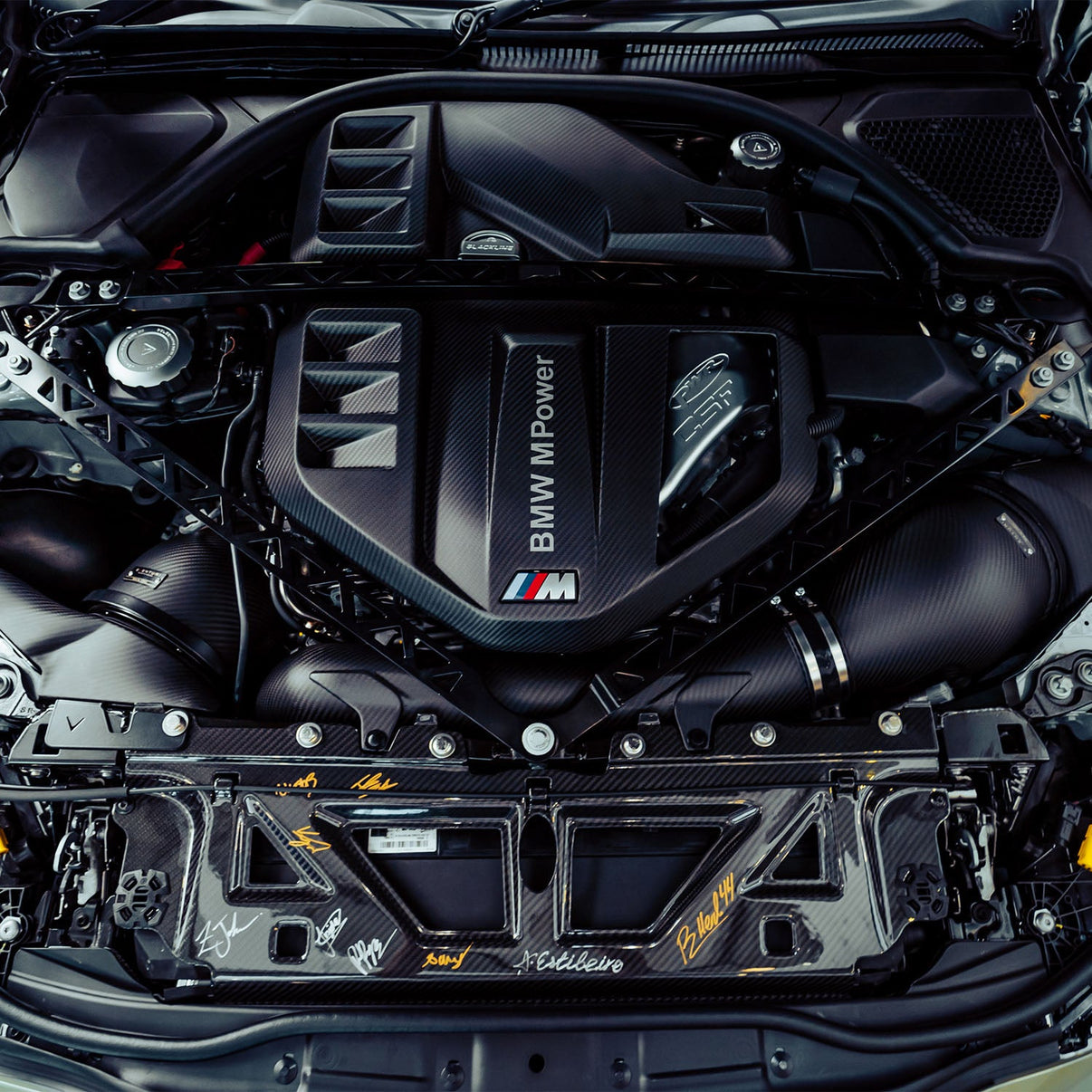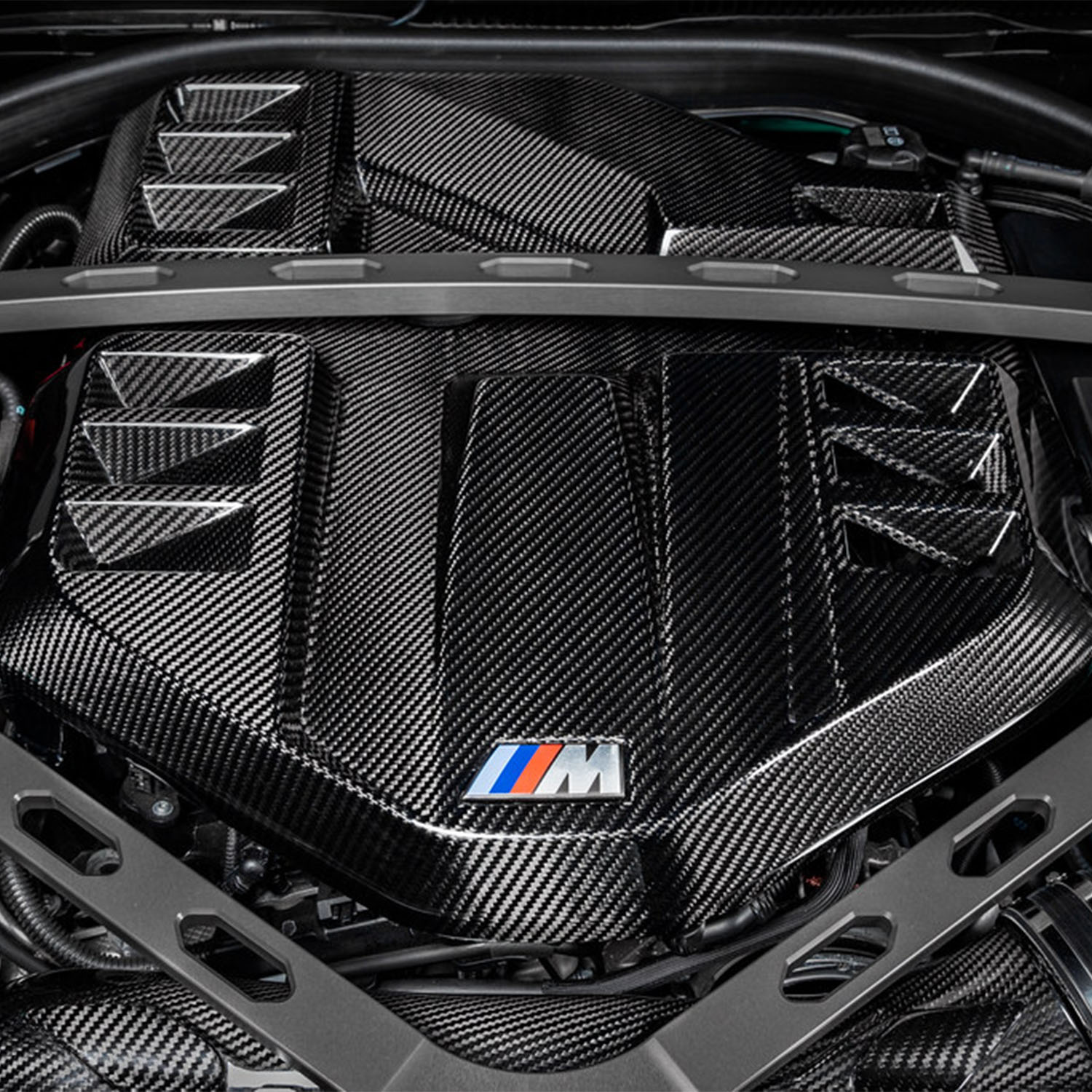 The Eventuri carbon fibre engine cover for the BMW G80 G81 M3, G82 G83 M4 and G87 M2. This stunning visual modification transforms the look of any S58-powered G8X BMW. Available in a high gloss or matte finish to suit your personal preference. The OEM plastic engine cover looks and feels cheap - it has no place on a flagship BMW M Car.